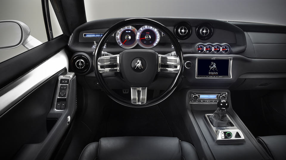 other features include 19″ rolling stocks shod in 255/40 ZR19 tires up front and 285/40 ZR19 at the rear, magnetic selective ride control, traction control, variable-ratio power steering, Brembo braking system with ventilated cross-drilled carbon-ceramic rotors paired with 6-pod calipers front and 4-pods rear, a “superformed” aluminum chassis with carbon fiber lined inners, hand wrapped leather interior, Alcantara ceiling, analog gauges, plus the usuals such as air-conditioning, GPS, radio/CD/DVD combo player, USB port, onboard tire pressure monitor and more. it all sounds nice, but we have to keep in mind EQUUS Automotive is marketing this born-again muscle car as a luxury ride, or a luxury American muscle car to be more precise, and thus it does come with a very hefty price tag; expect to shell out at least $250,000 for one of these. ouch. looks like before you can start burning rubbers on the tarmac, you will be burning a mega size hole in your bank account.