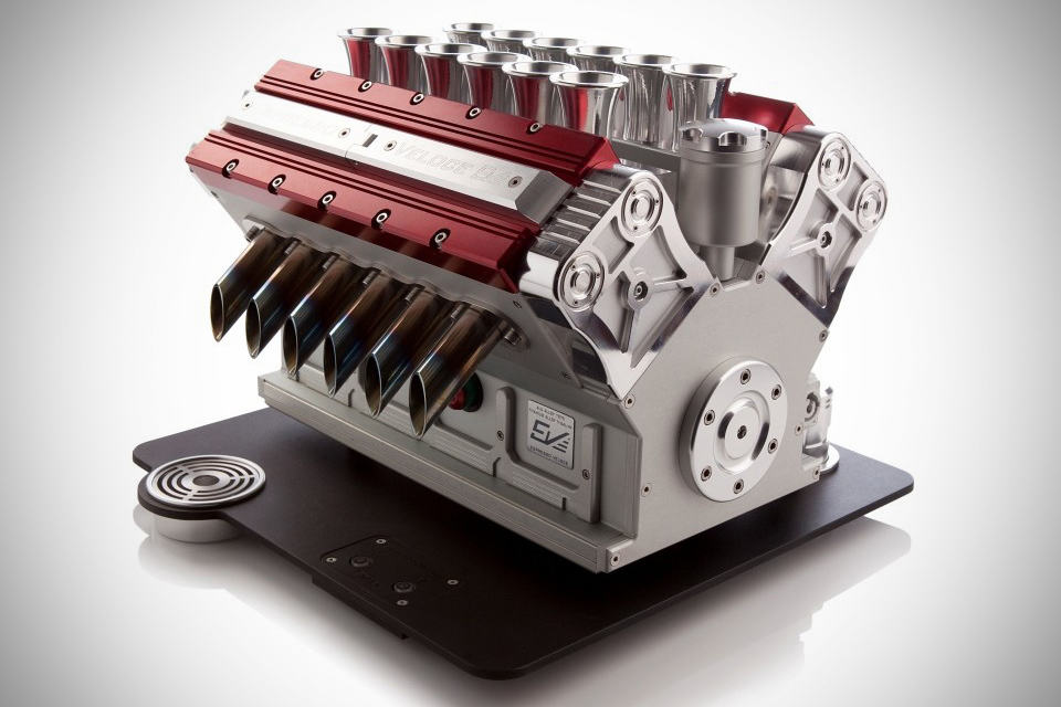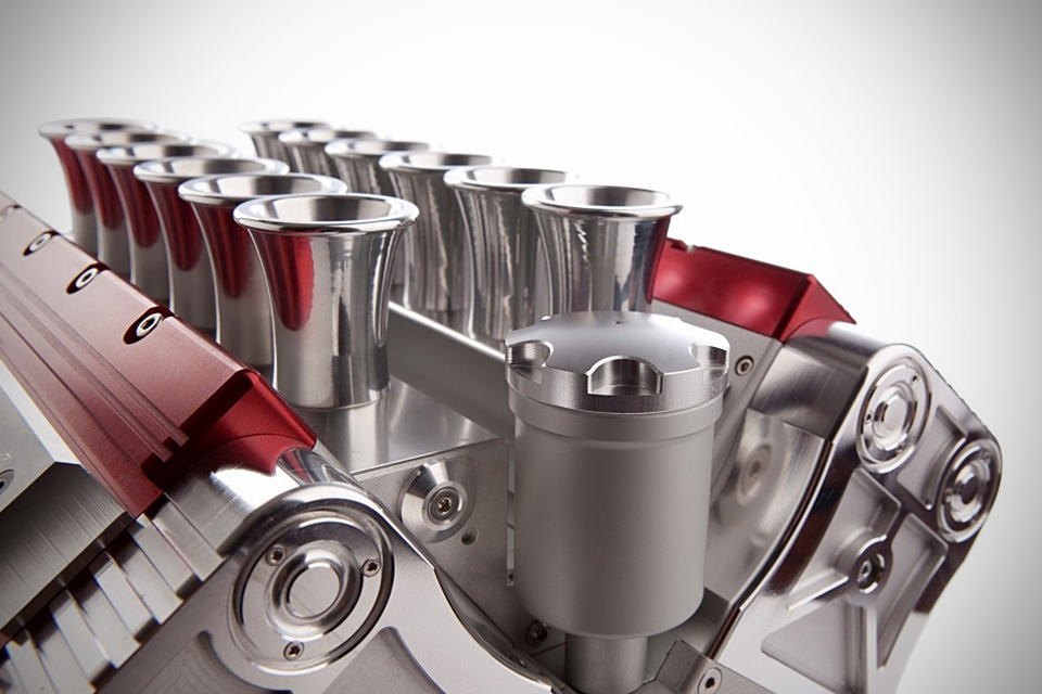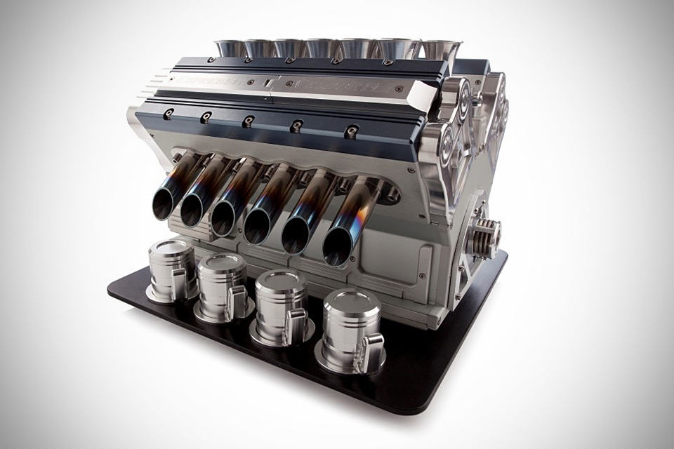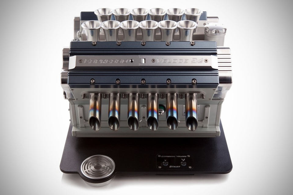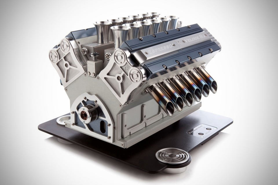 if you are a serious petrol head, we bet you would gladly (and proudly) display a car’s engine (if not the entire vehicle) in your humble pad to feed your daily dose of appreciation for this wonderful invention of our time (we know we would). if you are really going to do so, then you might as well have one that dispenses a hot cuppa? the Espresso Veloce V12 Espresso Maker you see here will let you do just that. fashion after a V12 engine (there’s a V10 version too), this massive piece of intense joe maker is made from premium exotic materials usually found in motor racing cars, such as titanium, magnesium, and aluminum, and features oil filter-shaped coffee filters, exhaust outlets where the pipping hot brew is dispensed (well, only from one of them, actually), incredible details such as sleek rocker covers, open air intakes, cast engine block, and it appropriately comes complete with a set of coffee cups modeled after, you guessed it, engine pistons. the Espresso Veloce V12 Espresso Maker will make a nice addition to any motoring enthusiast’s motoring shrine, but with just 500 units that will make the round, plus the aforementioned premium materials, it is safe to say it will going to cost quite bit – though no official numbers were provided, or when it will be officially made available.