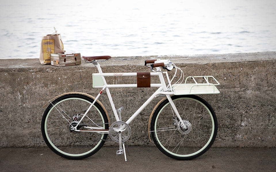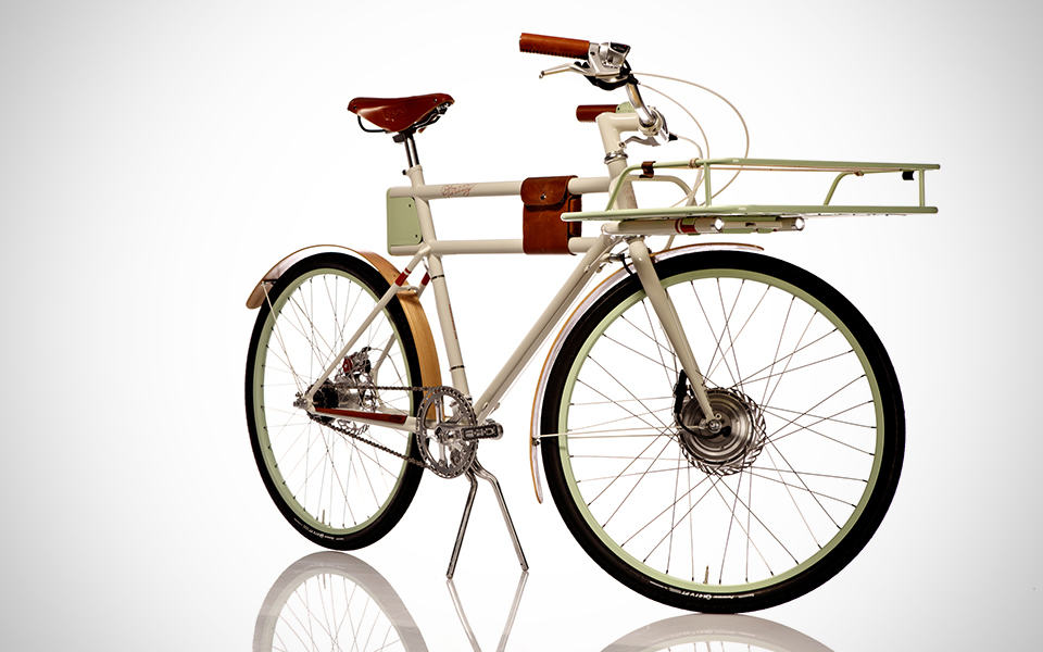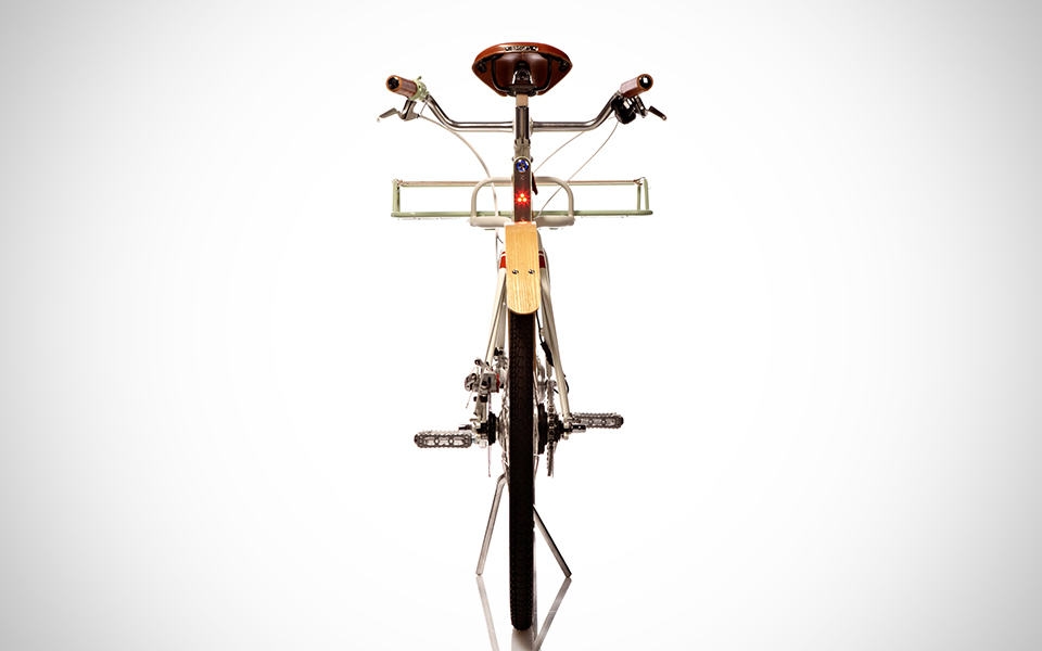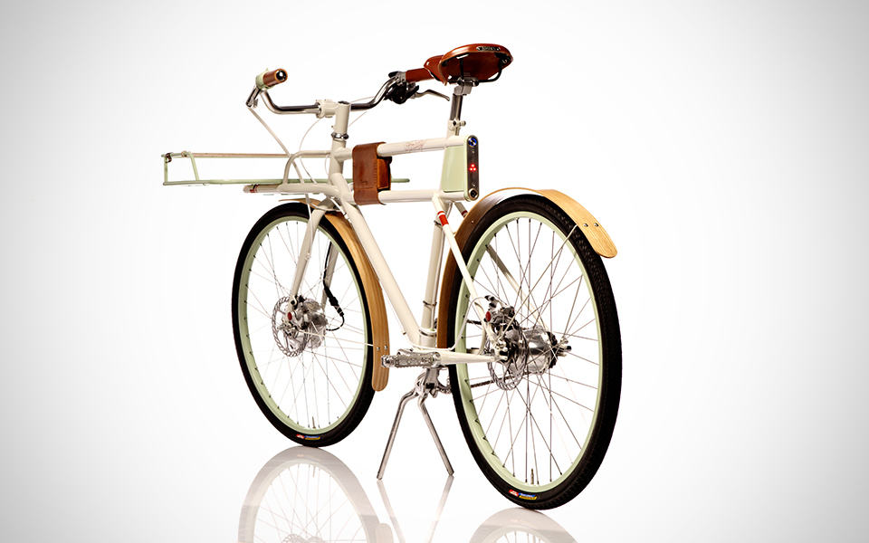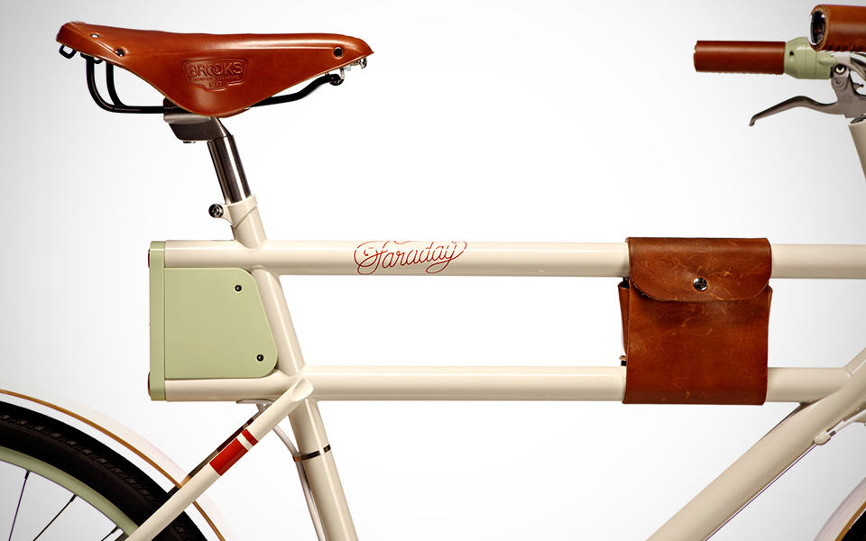 powering its 250W brushless DC electric hub motor are lithium batteries hidden away inside the frame – again, not giving away its true nature. the battery pack gives an electric pedal assist range of around 10 to 15 miles and takes just 45 minutes to be fully juiced. other practical features include integrated LED headlights and taillights that automatically lights up at dusk, waterproof bamboo fenders, 8-speed Shimano Alfine internally geared hub, avid mechanical disc brakes, Brooks B17 leather saddle, Velo Orange GrandCru headset, and a detached, generously-sized front rack that can be loaded up with up to 30 pounds of cargo. if you the Faraday Porteur Electric Bike sounds all good to you, you can get one for yourself by making a pledge of $3,500 over at its Kickstarter page. hit the jump for a product video or a few more awesome images of the Faraday Porteur Electric Bike to further convince why you should be getting one.