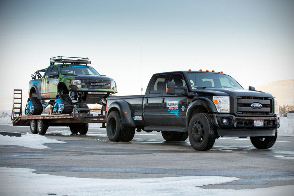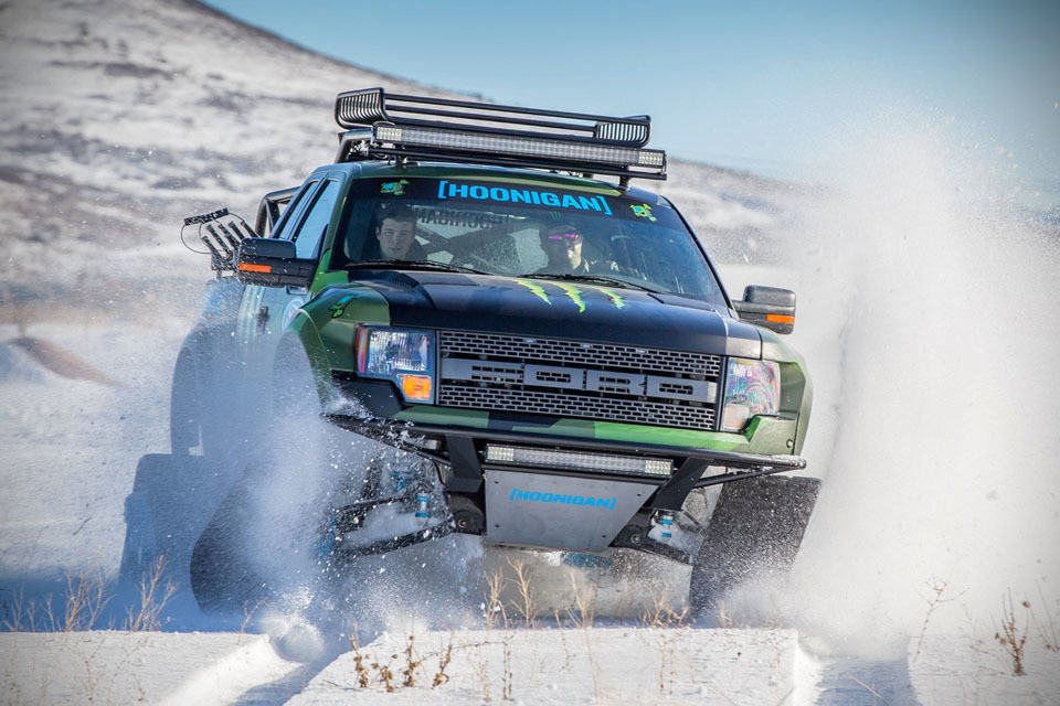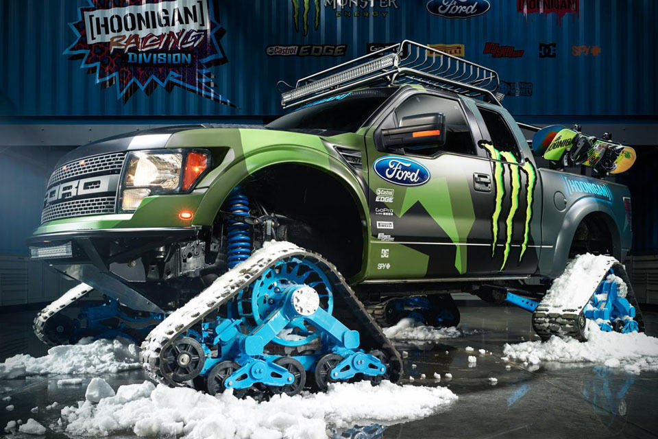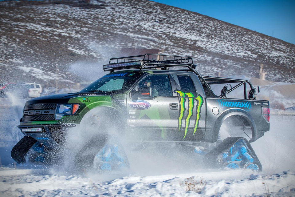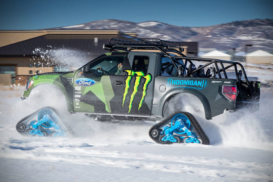 when you live and breathe motorsport, it is only natural that the ride you’d take when going up the snowy mountains for some snowboard fun would be one of the kind, or maybe that only applies to Ken Block whose choice vehicle would be this Ford F-150 RaptorTRAX Track Vehicle.