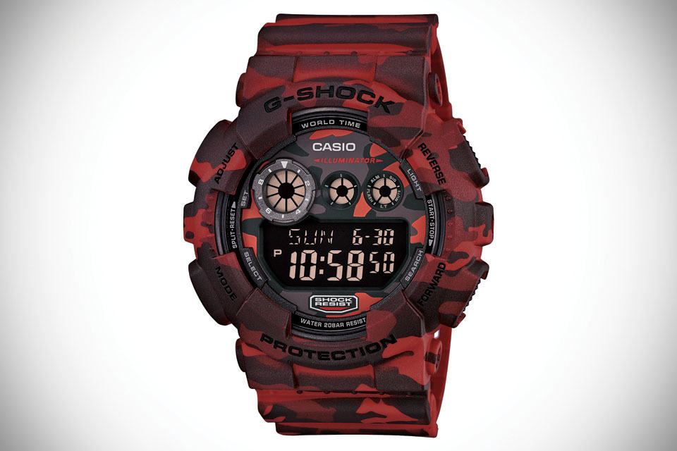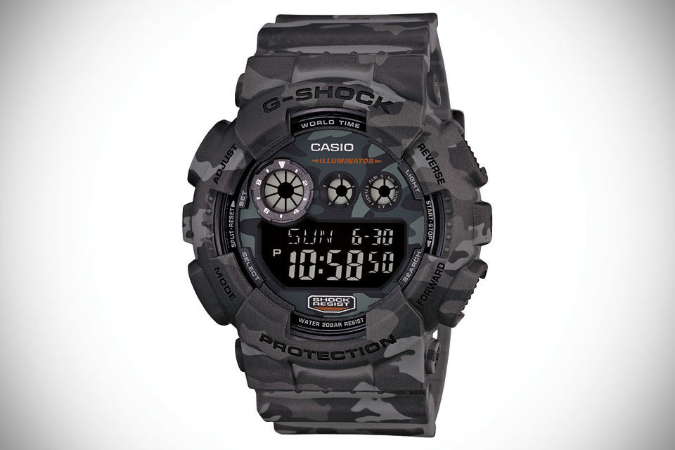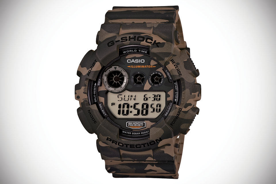 G-SHOCK has been known for its super rugged qualities, but yet it has never been associated with another rugged design element: camouflage, well, that is until now. meet the G-SHOCK Camouflage Watches, a series of rugged digital timepiece presented in an all-over coating of a classic tiger and woodland camouflage prints. kicking off the series is the GDX6900CM featuring a tiger camo design covering the case, band and dial. the XL GDX6900CM has a 53.9 mm case diameter and is available in a choice of two colorways: tan and grey. key features include water resistant to 200M (656 feet), MIL-STD-810G military standard shock resistant, auto Super Illuminator LED light, 3 multi-function alarms, 1/100th stopwatch, countdown timer, 12/24-hour time formats, 48-city world time and a 10-year battery.