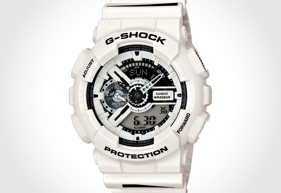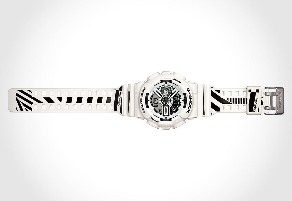 have you wonder why there aren’t many Navy-inspired merchandises? honestly, we are not sure why too. it might have been the olive green colorway of the military that lures many man-folks to it and thus, overshadowing the predominantly white or blue Navy gear. seriously, it is time to give the Navy some well deserved recognition, after all, almost all major conflicts were triumph with the help of the Navy’s prowess. you can start by grabbing a piece of the G-SHOCK x Maharishi GA110HM-7A, a first collaborative watch between G-SHOCK and UK-based street wear label, Maharishi, which sport an interesting black on white print design that is said to be inspired by the dazzle paint scheme used on Navy battleships to confuse German torpedo operators during WWI. other than its “bamdazzle” pattern, the watch features the mandatory shock resistance, water resistance to 200-meter (656 feet), magnetic resistance, auto LED light with afterglow, 48-city world time, 1/1000th stopwatch with speed indicator, up to 4 daily alarms plus one snooze alarm, auto calendar and hourly time sign. this limited edition watch comes packed in a matching package design that promise to have you dazzle. the G-SHOCK x Maharishi GA110HM-7A is available now for $150 each at select retailers including Macy’s, Tourneau, Tappers, Hamilton, Fashion Time, Altivo, Tilly’s, as well as online via www.gshock.com. larger views after the break.