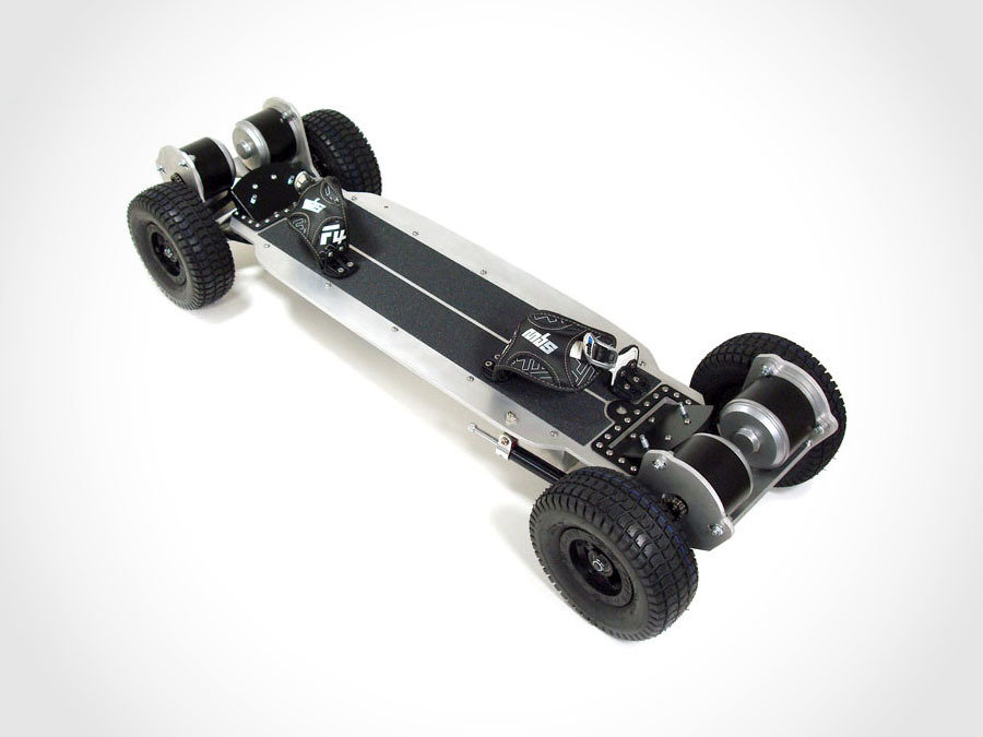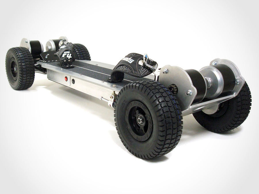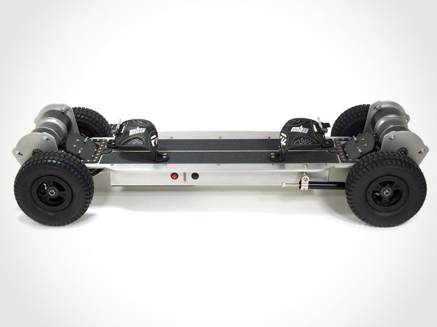 if you think today’s electric skateboards are little too tame to make it to your ‘to buy’ list, then the Gnarboards Trail Rider Electric Skateboard might just change your perception. what sets the Trail Rider apart from the rest of the electric skateboard is its wicked fast speed: it can reach a top speed of 28 mph (45 km/h) in just 1.9 seconds. the Trail Rider is driven by four 850W electric motors, each driving one of its four wheels. its 4WD capability coupled with essential off-road qualities such as high ground clearance and large 9″ pneumatic all-terrain tires, allows the Trail Rider to tear through almost any terrains, while the integrated ratchet-style MBS foot bindings ensure the rider sticks to its aluminum deck throughout the ride. control of the board is by means of a wired hand controller, which utilizes rocking-motion to offer three modes of control: full acceleration, neutral and full brake. other features include 37V 20 Ah Lithium-Polymer battery housed in an aluminum battery box, a 400 amp motor controller, regenerative brakes, adjustable channel trucks with four adjustable truck dampers, and a range of up to 16 miles (26 km) per charge. the Gnarboards Trail Rider is the bad ass among the three Gnarboards on offer and will set you back at $6,100. check out a few more views and product video clip after the break.