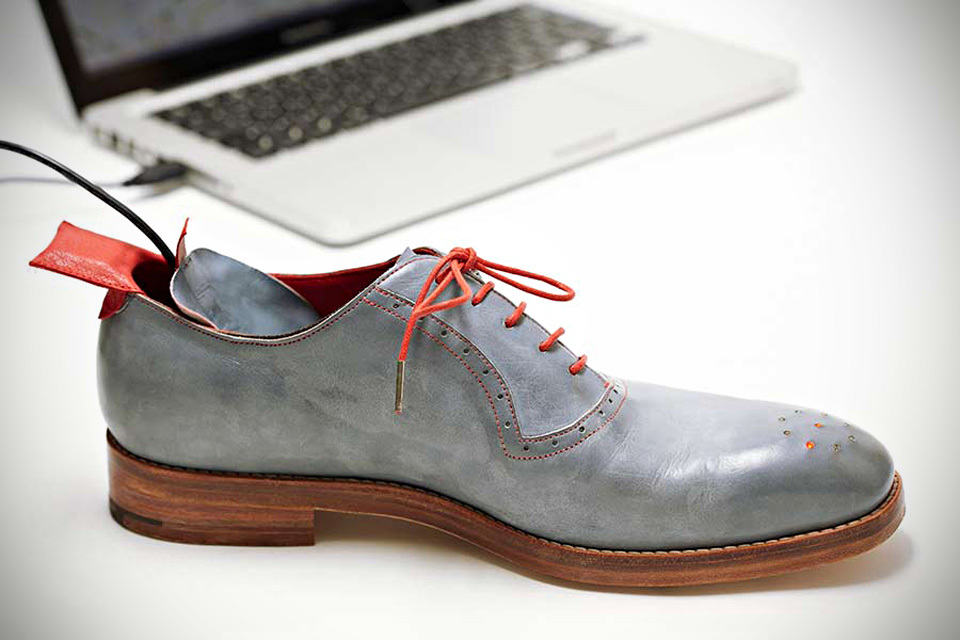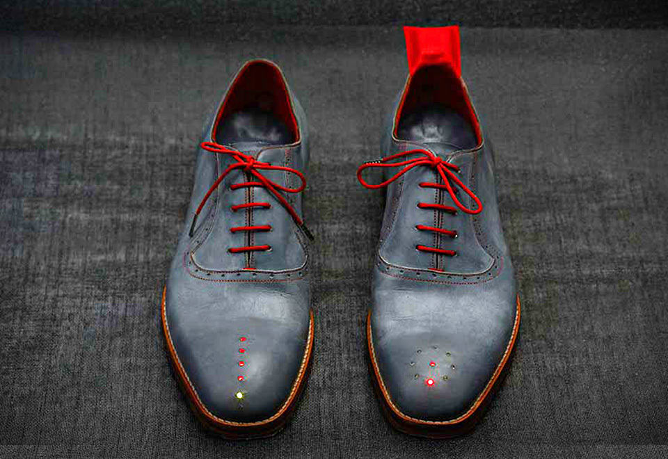 we are living in an advanced world and thus, pulling out a digital map for direction is a common thing. however, if you are embarrassed by the fact that you needed a map to get around a place, or simply feels that whipping a device out is a hassle, the GPS Shoes by Dominic Wilcox might be a God-sent gadget for your feet and wherever you are heading. as the product name implies, it is not only a pair of pretty looking footwear, it is also a GPS device that works on its own, helping you to navigate to where you want to go. as you can see, there is a ring of LED lights on the left shoe that indicates the heading, while a straight line of LED lights on the right shoes represents the remaining distance to your destination. so basically, all you have to look down and you get the direction, but before that can happen, there is a couple of things you will need to do first. lets just say it’s a pre-travel planning which requires you to load in the destination to the shoes using a custom mapping software on your computer.