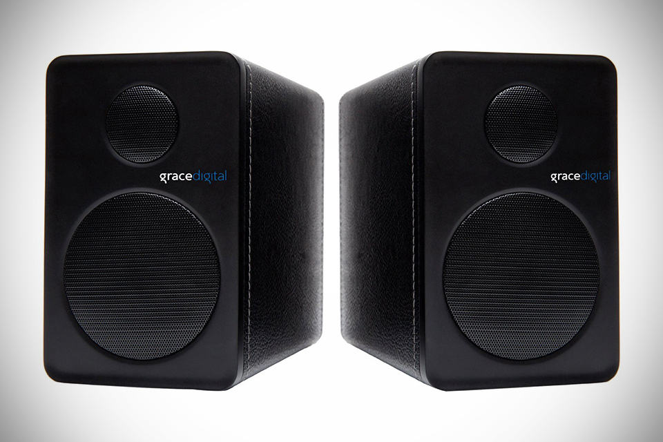 if your idea of luxury is leather and you absolutely love music that won’t add clutter to your living space, then this pair of leatherette clad Bluetooth Bookshelf Speakers by Grace Digital (GDI-BTSP201) would be right up your alley. employing the current standards for high quality audio streaming, namely aptX, AAC, as well as SBC, it has 36W of audio power, delivered through its 1″ soft dome tweeters and a 3.5″ composite cone woofers and rear port. other features include Bluetooth 4.0 technology that supports pairing of up to 8 devices, music control via connected Bluetooth-enabled smartphone or tablet, alternative control through a full-featured control panel located on top of speaker, a USB port for recharging your mobile device, a set of RCA auxiliary audio input for hooking up with wired audio sources, and last but not the least, each speaker is wrapped in a classy leatherette casing for that extra touch of elegance.