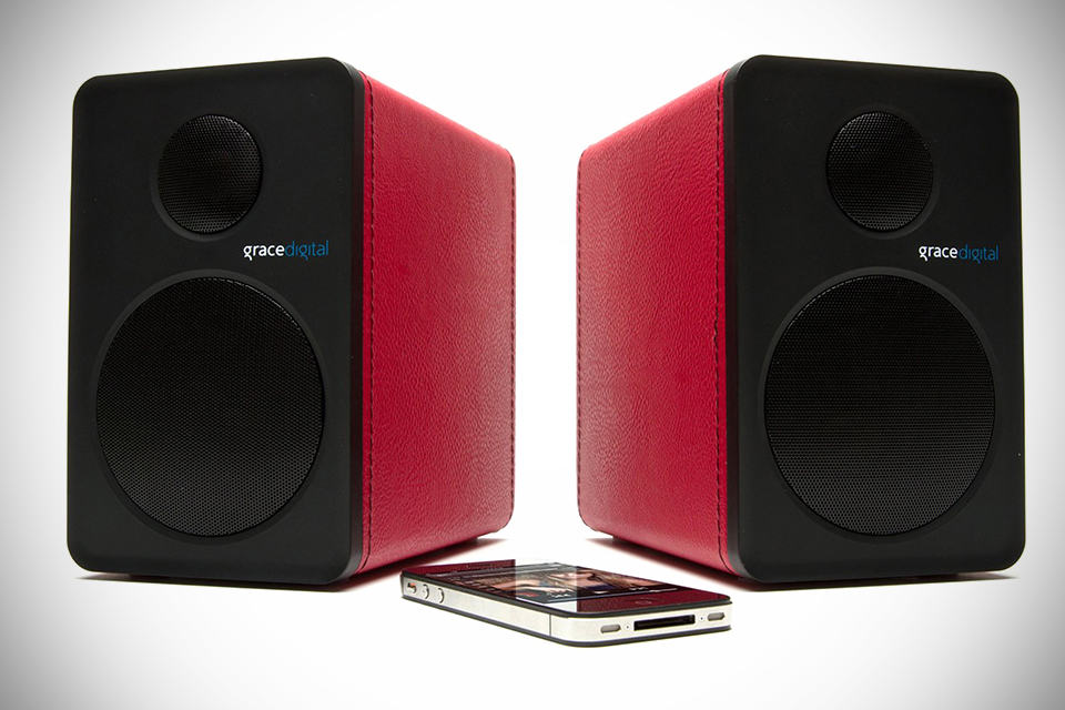 available in choice of three colors: red, black and white. the Grace Digital Bluetooth Bookshelf Speakers are available now as we speak. you can pick a pair up from Amazon for $199.99.