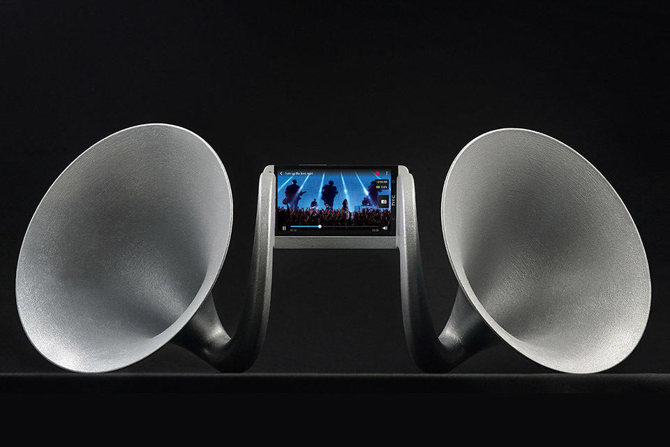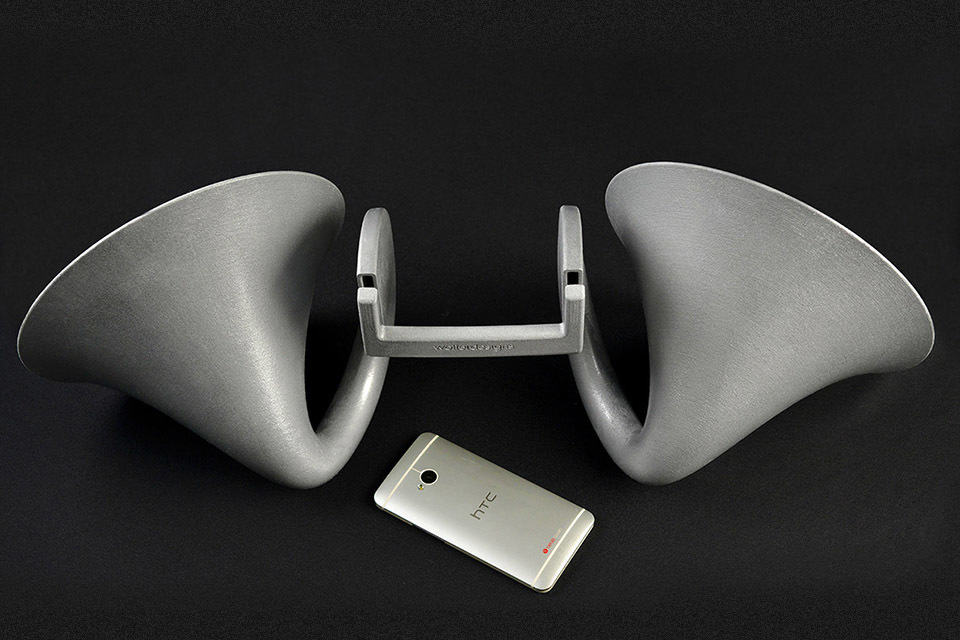 Android sound docks are few and far between, much less one that rides on natural amplification, which we have seen loads of them designed for iOS devices and there is good reason for this ‘phenomena’. Android handsets come in a myriad of shape and sizes, and they refreshes as quickly as you could say Kit Kat and those are good reasons for the lack of sound dock for them. however, things are set to change with the proliferation of 3D printing which allows designers and manufacturers to turn out of products without costly molds. the Gramohorn II 3D Printed Acoustic Speaker for HTC One you see here is one such example. we shan’t dwell into the mandate or theory behind the birth of this set of beautiful analog horns, instead dive straight into this Justin Wolter designed product.