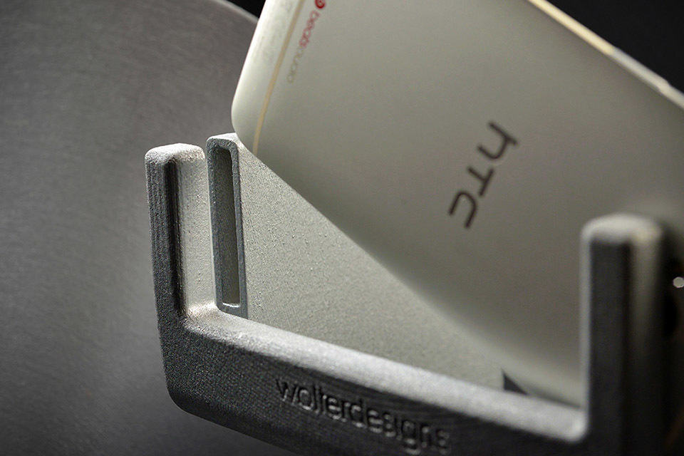 like the many natural amplification speakers we have seen designed for iPhone, the Gramohorn II is devoid of electronics and design around the principles of resonance to channel and amplify the docked HTC One’s audio by up to 50 percent. the dock features two unique channels positioned over each of the HTC One’s BoomSound stereo speakers and direct them through to the horn speakers, which according to Wolter Designs, enhances the lower frequencies and bass notes to result in a “deeper, fuller and better music.” two versions are currently offered, a plaster-based and a limited edition metal-based version. the former is crafted from plaster composite material and hand finished in a choice of 22 different colors and 5 metallic finishes, while the latter is of stainless steel powder and infused bronze, which were put through a process of curing, sintering, plating and tumbling, and offered in three finishes (silver, bronze and gold).