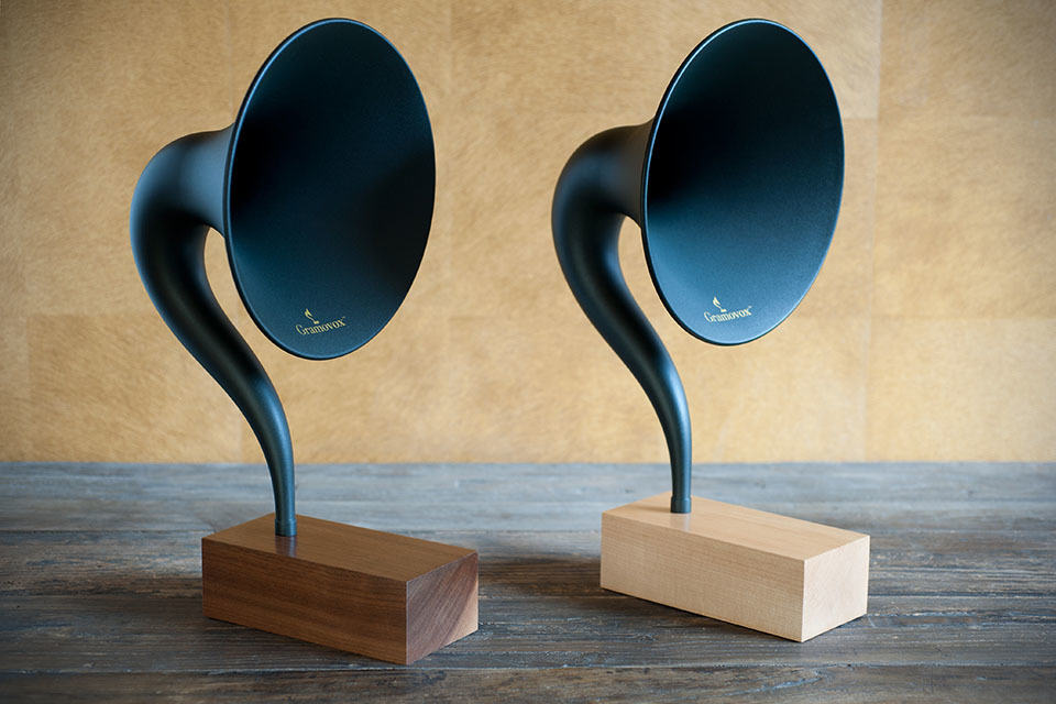the wood base is available in a choice of walnut or maple and the speaker base also sports a 3.5mm input, in the event you have non-Bluetooth equipped sources to play from. the base will be crafted by Ohio from hand-selected wood boards from the lumber yards, while the horn will be fabricated with steel using the manufacturing methods from the 1920s. in a world where manufacturers are touting portability with their Bluetooth speakers, what Gramovox Bluetooth Gramophone did was refreshing and yet brave – in the sense that they are actually riding against the tide. whether this concept will be well received remains to be seen and what better way then to let Kickstarter be the platform to be judged? speaking of which, the Gramovox Bluetooth Gramophone is an on-going Kickstarter campaign aimed to raise 100 grand to fund the manufacturing of the speaker and you can part of the effort to make this awesome speaker a reality by backing up the project. though we have to forewarn you that it is not going to be cheap, not even close.