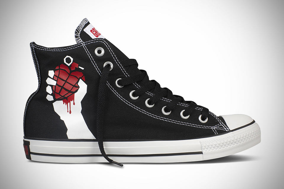 whenever there’s a collaboration between a fashion label and performing artistes, you know that the market is probably targeted at the said artistes’ fans, or anyone who appreciate the work of art put into the products. with the Green Day Converse Chuck Taylor All Star Collection, we guess there’s no ‘or’ cos’ we are sure it will appeal to both Green Day fans and non-fans alike. to begin with, it is a Chuck Taylor and seriously, who doesn’t love Charlie’s classic appeal? adding the iconic artworks from Green Day’s greatest albums throughout the years to these sneakers only made them even more lovable. all in all, there are four models, each with its own unique design elements, to choose from. there are the Chuck Taylor All Star and the Bosey Boot models that features the artwork from American Idiot (Green Day American Idiot Chuck Taylor All Star, $60 and Chuck Taylor All Star Bosey Boot, $75). and then there’s the Green Day Dookie Chuck Taylor All Star ($60) with the screen-print of the seminal Dookie album against a white canvas with funky yellow-green laces. last but not least, the artwork of the modern day classic Kerplunk album find its way onto the Green Day Kerplunk Chuck Taylor All Star ($65), making a clear statement with its simplistic green, along with the white and black shades of the album cover. the Green Day Converse Chuck Taylor All Star Collection is available now exclusively at Converse and Journeys brick-and-mortar stores, as well as their respective online stores.