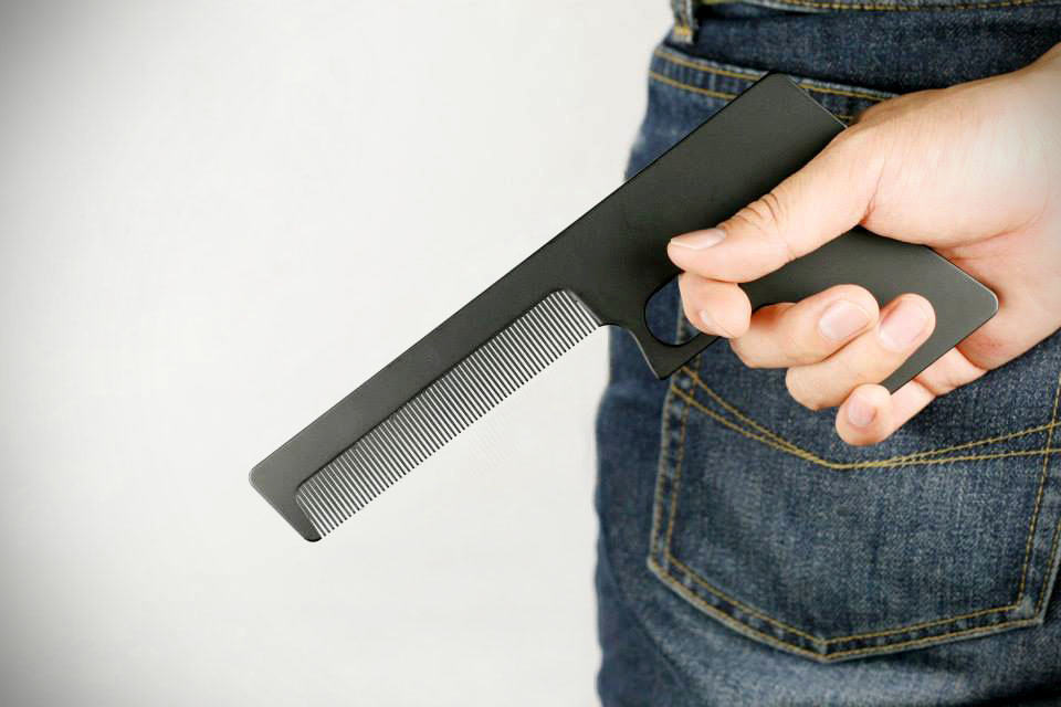remember there was a time when switchblade comb (think: <em>Saturday Day Night Fever</em>) was a rad thing? you know the harmless comb that was fashioned after the switchblade knives and pops out like one? well, that was quite passe, isn't it? with the brewing debate over gun ruling