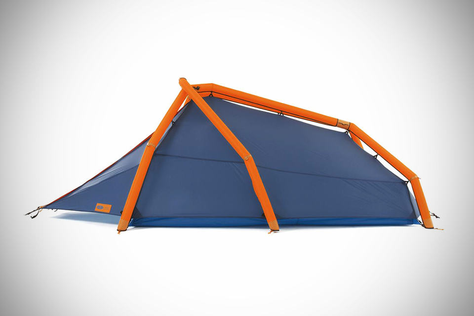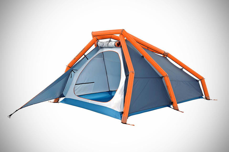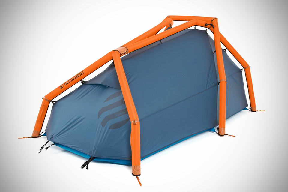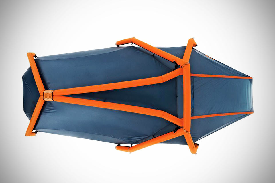 while camping might be fun, setting up a traditional tent is anything but. this is where a tent such as the HEMIPLANET The Wedge Inflatable Tent will take that ‘pain’ out of your camping experience. the concept of an inflatable, pole-less tent was first introduced some two years ago by HEMIPLANET with the inflatable 2-3 person tent dubbed The Cave. and now, the firm has a new kid on the block for those who are looking for a tad smaller alternative to The Cave. known as The Wedge Inflatable Tent by HEMIPLANET, it offers a slightly lower profile than that of its larger sibling while still giving you a good 4.4 square meter of interior real estate and uses the same innovative airbeams to prop up the tent, inflatable via a manual air pump. all you have to do is to unroll it, inflate and wah-lah, you are all set with a good sheltered resting place. of course, you do need to peg it down any how cos’ you won’t want to be chasing after the tent like a mad man when the gust comes, do you? other features include a single inflation point to erect the whole tent, a stable and robust air frame IDG with geodesic structure, double layer air struts, multi-chamber safety system (for preventing isolated puncture from bringing the whole tent down), two closable ventilation openings at the fly sheet, vestibule located at the entrance area with three opening options, and a room for two with tons of storage space. sounds like a perfect tent for tent-setup haters like us and possibly making us more incline to give the great outdoor a shot – if we can get past its asking price tag of €449 (around US$574), and the weight of 3.2 plus kilograms for the total package, including the required pump. take a few more look at the The Wedge Inflatable Tent by HEMIPLANET in the gallery below.