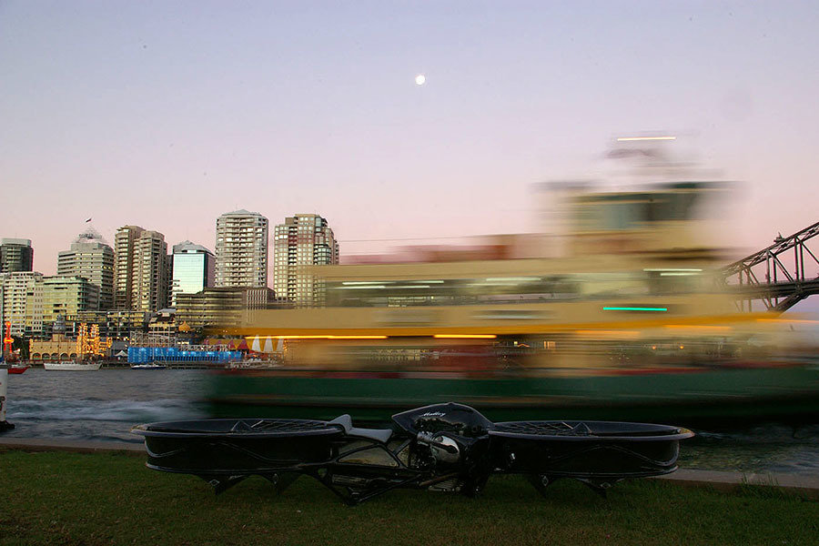 the name says it all: Hoverbike is a bike that hovers and in fact, it does much more than just hover. invented by one Chris Molloy from Australia, this awesome personal air transport can actually reach an airspeed of 150 knots (278 km/h) and is able to reach an altitude of more than 10,000 feet – all done while riding it like a motorcycle. while i am excited about the hoverbike but the idea of flying up to 10,000 feet riding like a motorbike does give the chill. perhaps, a parachute backpack will be a good idea here. more images of this exciting aircraft after the break.