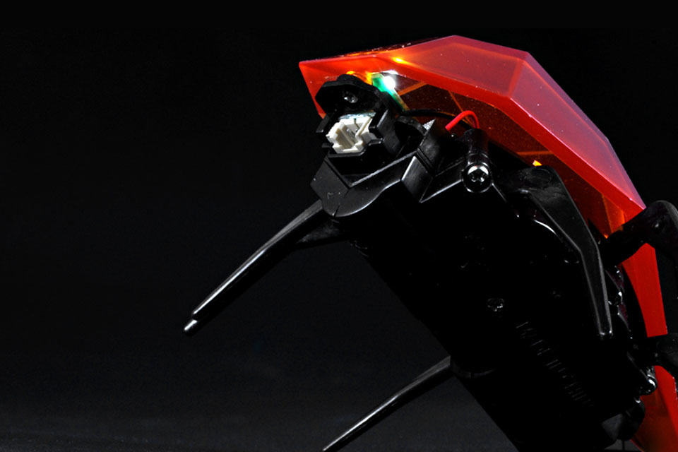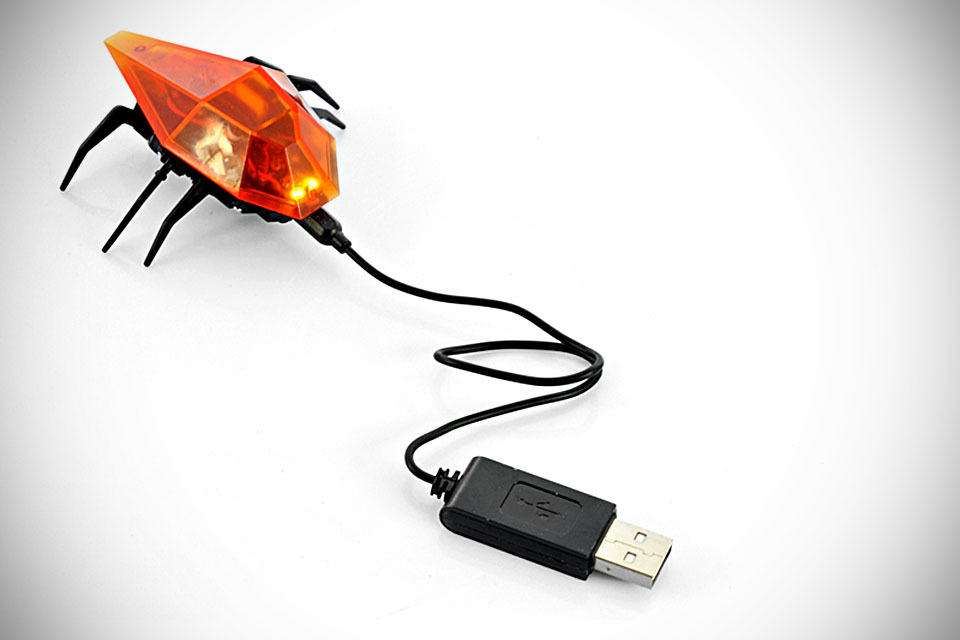 packed into its tiny body is a lithium-ion battery, a 70 mA-3.7V item, that afford about 20 minutes of fun crawl (and scaring the shit out of your roach-phobia friends and colleagues) before requiring to be juiced. recharging is via> USB and takes about 20 minutes or so. it has a range of just 10 meters, which could be a let down for some, but with a robotic creature this small, anything farther would be visually difficult to make out. we saw it in action before and these little things really move like real bugs. just the sounds of it pacing around on hard concrete floor is enough to send chills down insect-phobias’ spine. you can bag your very own iBug RC Robotic Bug for just 22 bucks. have a few more look at this tiny toy after the break.