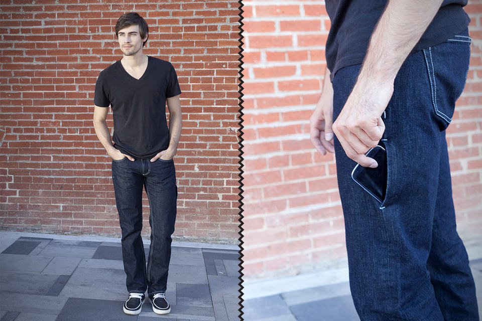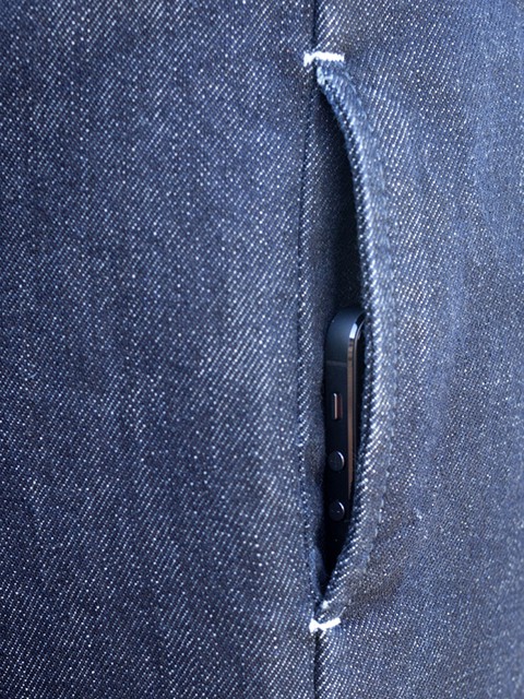 dudes. how many times have you been caught in an awkward act while trying to retrieve your smartphone from your jeans’ front pocket? we all have been in the same situation one time or another – made worst by today’s bigger phone size and tighter jeans. any how, you know what i am talking about, don’t you? strangely, large size cell phone has been around for at least two years or more now but till now, the jeans design still bear no significant changes to accommodate the changing lifestyle (more like changing phone size). there is a revolution going on and a small startup known as I/O Denim has rethought how a jean should be for today’s large cellphone-toting gentlemen. so what’s so special about I/O Denim’s jeans? well, the highlight is of course, its I/O Pocket™, a pocket located on the left-hand side of the jeans, between the knee and the hip and along the seam of the denim. this pocket is designed to accommodate iPhones with slim case or any smartphone up to 4.8-inch screen size such as the Samsung Galaxy S3. it is placed, seamlessly and unobtrusively, within your arm’s reach, so you can easily reach out and grab your phone even when seated. the first batch of I/O Denim is affectionally dubbed as the “First Edition” and features fit that is along the line of “slim fit” jeans and for a start, it will be available only in dark indigo wash. the jeans will be made from denim of 100 percent cotton, sourced from a denim mill in North Carolina and eventually manufactured in Downtown LA. the I/O Denim is currently on crowdfunding platform Kickstarter seeking your support and for a pledge of $100 or more, a pair could be yours (with delivery slated to be in February 2013). scroll down for a cool pledge video (don’t miss the intro – its hilarious!) and see the jeans in action.