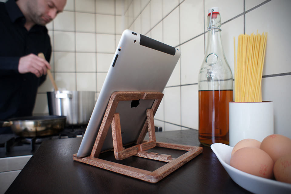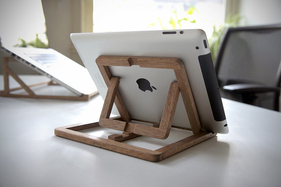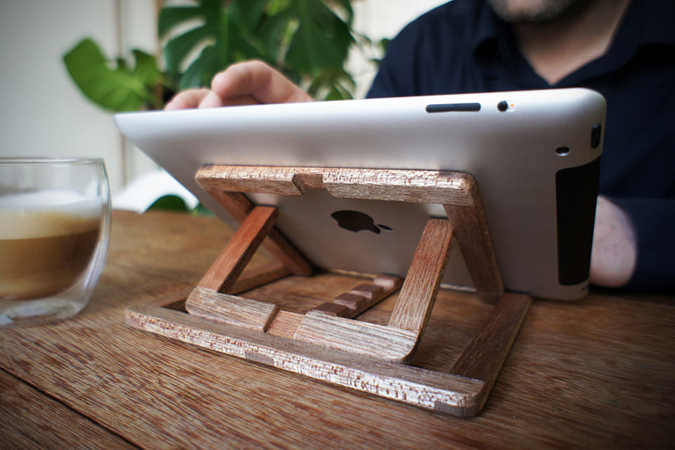 unlike smartphones, the most sought after accessory for iPad (or any tablets for that matter) is probably a stand. cos’ after all the lightweight claim by makers, a tablet is still never light on the hands for too long a time. plus, most folks would prefer to have two hands to go about other stuff like cooking, embracing your love one (erhmm) et cetera. speaking of which, stand design to prop up the iPad is in abundance but if you want something with a little more style, the iPad Stand by OOOMS could be a brilliant contender. crafted from Meranti wood (classy!), it supports both portrait and landscape viewing modes with four different viewing angles (its maker said ‘3’ angles but we counted ‘4’ but hey, who’s complaining?) to suit your different need (typing, watching movies et cetera). and since it has a universal design, it could be use with other brand of tablets and even for books. didn’t we told you it is a brilliant stand? though such versatility and style doesn’t come cheap: the iPad Stand by OOOMS will set you back at €59 a pop (about US$77). hit the jump for a few larger views.