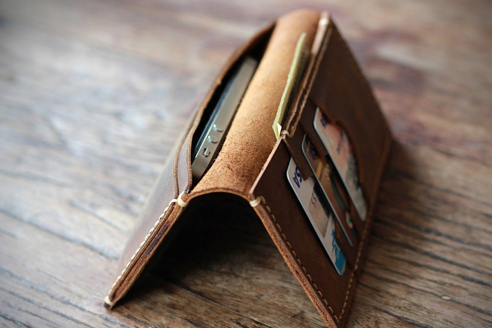 trying to pare down the content of our wallets is next to impossible, but when we really think about it, all we need is some cards, a few bills, and a few miscellaneous stuff like memory cards, or perhaps a couple unsigned check for those just-in-case situations. and since some of us also have the iPhone to take care of, we thought an iPhone 5 Leather Wallet by JooJoobs could be the answer to your wallet-trimming endeavor. since it is crafted from leather it is guaranteed to be on the classy side, and the distressed leather just some bits of rustic charm to it (read: classy and rugged, which is the way we like it). within this stitched leather wallet are three slots for credit cards, one pocket for the iPhone, one sleeve for cash, plus a bonus sleeve for other miscellaneous stuff.