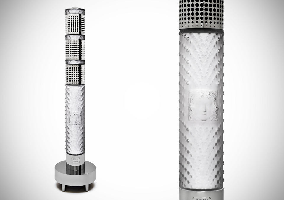 we have to agree that besides the price point, the AeroDream One by Jarre Technologies is anything but practical, unless you enjoy scaling a ladder to dock your iPod touch and isn’t afraid of height. anyway, unbeknownst to some, Jarre actually do have smaller models that’s within reach to most folks, well, in terms of both height and pricing. the AeroSystem One has been around for a good two years now but if you are in the market for something with a little more unique character and the original €799 price tag hasn’t knock you off your feet, then perhaps a pricer piece touch by Lalique might fancy the individualist in you. dubbed the AeroSystem One by Lalique, it shares similar features as the regular AeroSystem One which includes two 3″ drivers, a 5.25″ subwoofer, built-in amplifier that pumps out 60W of bass and 30W to each of the two drivers, Apple 30-pin connector, USB 2.0 port for playing media off USB flash drives or external hard drives, a 3.5mm mini jack, and an IR remote. the innards might be the same but aesthetically, it is a work of art that resonant the harmonious marriage between the art of sound reproduction and the intricate art of crystal production. the Lalique crystal that decorates the lower portion of the 1 meter (3.3 feet) tall speaker system depicts jets of water emerging from the Masque de Femme – a scene that reminds us of the art decor of the renaissance period. a perfect coming together of music as an art and a modern art piece. for €12,000 (roughly US$15,450), this is not just any sound dock but an artistic sculpture which bears a heavy retro-future appearance. it will certainly makes you ignore fact that Apple 30-pin connector is part of tech history. take a look at the making of the crystals in the video after the break.