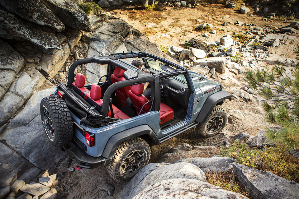 wait. didn’t Wrangler celebrates its 10th anniversary like donkey years ago? yes, they did but this ’10th’ is not for Wrangler but its for Wrangler that has been badged Rubicon. sounds complicated? really, it is not cos’ all you have know that the Jeep Wrangler Rubicon 10th Anniversary Edition is billed by its maker “the most capable Wrangler ever produced.” but if you really must dig into it, this limited edition off-road beast is equipped with a Pentastar 3.6-liter V6 engine with 285 ponies (212 kW) and 352 Nm (260 lb-ft) of torque on the tap. mated to a choice of standard six-speed manual or five-speed automatic gearbox, it features electronic-locking front and rear Dana 44 axles, Rock-Trac transfer case with a “4-Low” ratio of 4:1, Tru-Lok locking differentials front and rear, a one-half inch increase in ride height, monstrous BF Goodrich KM2 265/70R17 tires on Rubicon aluminum wheels in satin black with polished faces, a winch-capable black steel front bumper, black steel rear bumper, dual-intake Power Dome hood, red tow hooks (front and back), premium Sunrider soft top, striking red leather seats, leather-wrapped steering wheel with red stitching, a unique instrument cluster, Electronic Vehicle Information Center, “Rubicon 10th Anniversary” badges in and around the vehicle and touches of Mopar equipment including rock rails, black fuel filler door, tail lamp guards and slush mats. rolling into the dealership spring 2013 in both two-door Wrangler and four-door Wrangler Unlimited – in Stateside, of course. we are fine by that cos’ we are getting use to dreaming and indulge in still images instead. speaking of which, you can get your fix for this awesome off-roader in the gallery below.