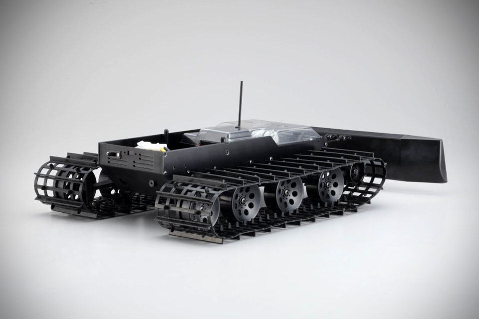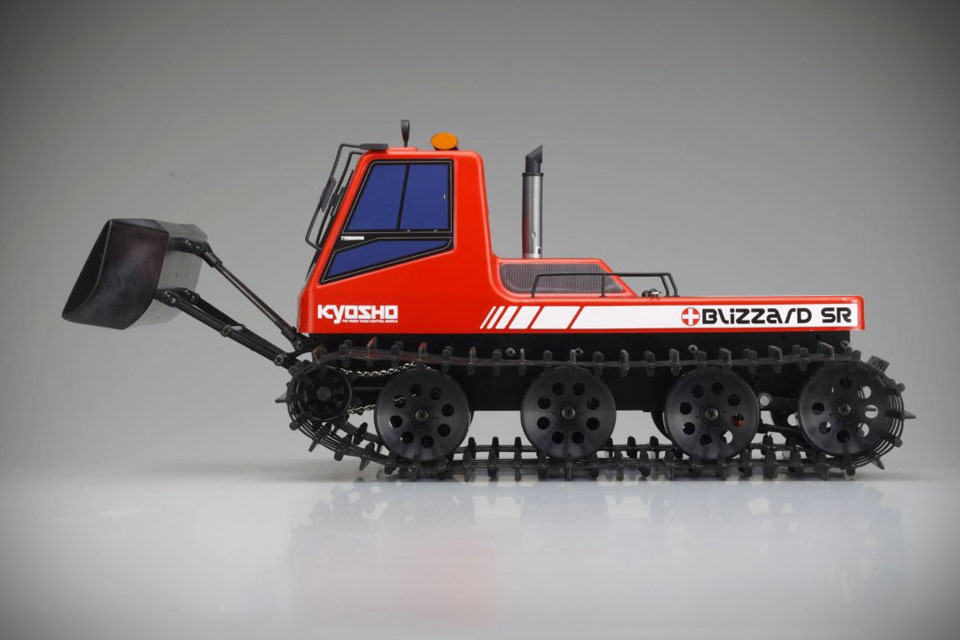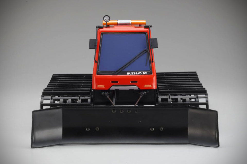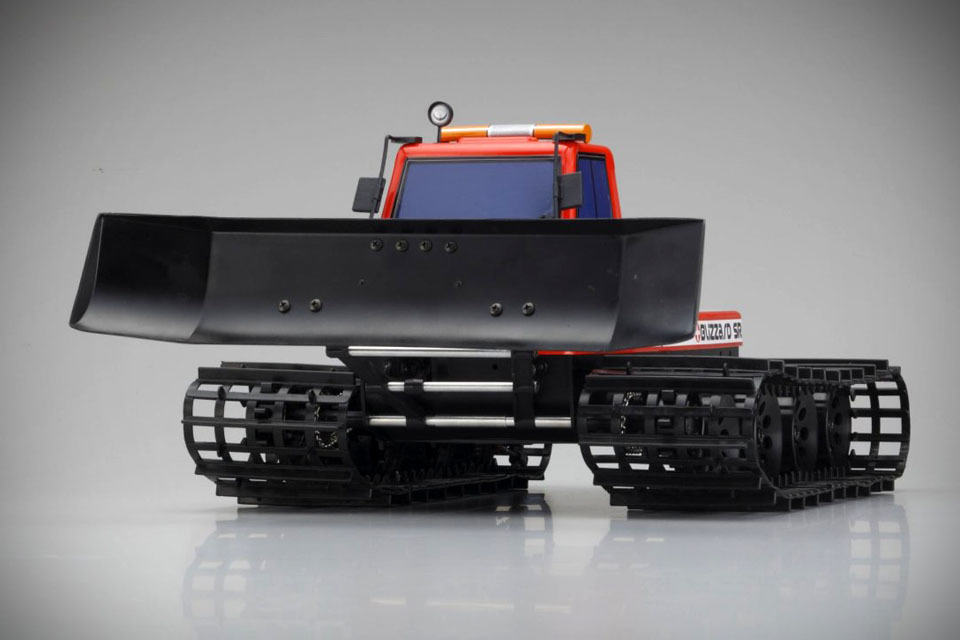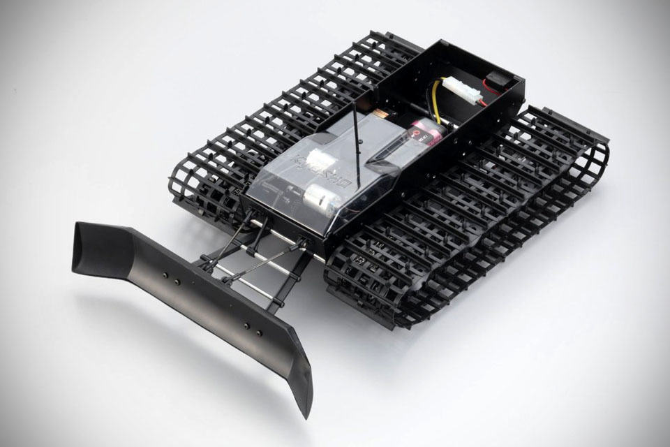 comes completely assembled aka Ready-To-Run (RTR), the Kyosho EP Blizzard SR Plow Vehicle features a dust and snow proof chassis with inner covers, shielding important components such as gears, motors, ESCs from the elements so you can actually get it onto the ground for some, well, ‘real work’ in miniature proportion, or maybe just take it as a rock climber or something. however, do note that as much as you might like to get this vehicle to clear your driveway, the vehicle is not waterproof, which means melting snow flakes might do harm to it. just thought you should know. other details include independently controlled tracks, full directional control (forward/reverse, left/right turning), rotation on the spot and of course, a working snow plow that can be raise and lowered via the included 2.4GHz transmitter.