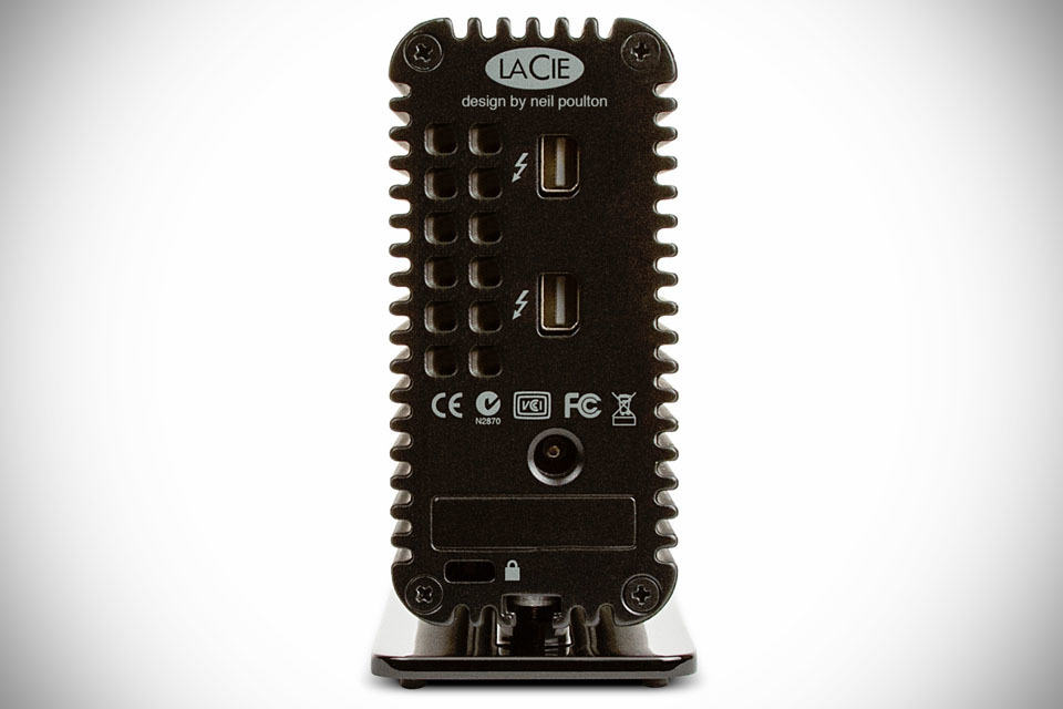 with 4K videoing becoming a common place, we are not going to kid ourselves that a regular SD card or USB flash drive is going cut it. no way. those UHD files are monstrous which means it requires whatever digital storage space you can harness and at a speed that won’t strangle your productivity. with the LaCie Little Big Disk Thunderbolt 2, it will have both your storage concern and desire for speed addressed. the second generation Thunderbolt built into it offers a mind-bending 1,375 MB/s and 1,180 MB/s read and write speed respectively, and it has two of them to get things going. the timeless Neil Poulton classic d2 enclosure protects the internals, which comprises of a pair of PCIe SSDs offering 1TB of storage and the necessary circuitry, and also aids the large thermoregulated fan in taking the heat away from this workhorse.