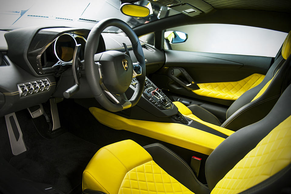 other obvious exterior enhancements include redesigned front and rear fascias with larger air intakes and extended splitter for improved aerodynamics and engine ventilation. but the most obvious of all is the newly developed Giallo Maggio (May yellow) paintwork, a color that’s exclusive to this anniversary edition, matched to a matte black finish lower portions. of course, the Aventador LP 720-4 50 Anniversario can also be ordered in other color through Lamborghini personalization program, but with a color so rich in heritage and intensity, why would you go any other way? on inside, the cabin features upholstery in fine, natural, semi-aniline leather developed specially for this model, with exclusive Q-Citura stitching (aka diamond pattern stitching). e’nuff said. witness the beauty of this beast for yourself in the gallery below.