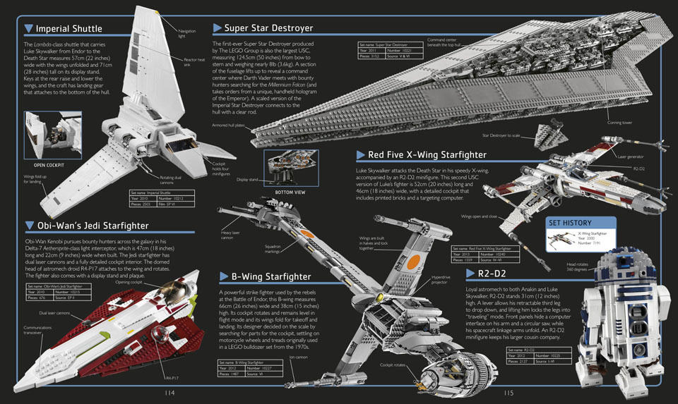 after over four years, DK Publishing finally gives LEGO Star Wars: The Visual Dictionary the long overdue update. entitled LEGO Star Wars: The Visual Dictionary: Updated and Expanded (ISBN 978-1465419217), this 144-page hardcover contains additional 48 pages and updated through and through, showcasing all the new sets and innovations from LEGO Star Wars right up to early 2014. expect a wealth of information including detailed and annotated photography offering insight into the characters, locations, creatures, as well as spacecraft from the bricked version of the galaxy far, far away. fans will be treated to details of every set to ever roll off the Danish toy company’s factory, from the built size – right down to the details of the minifigures, plus updated cross-sections that expose the inner workings of massive sets released in recent times such as the Death Star and the Millennium Falcon.