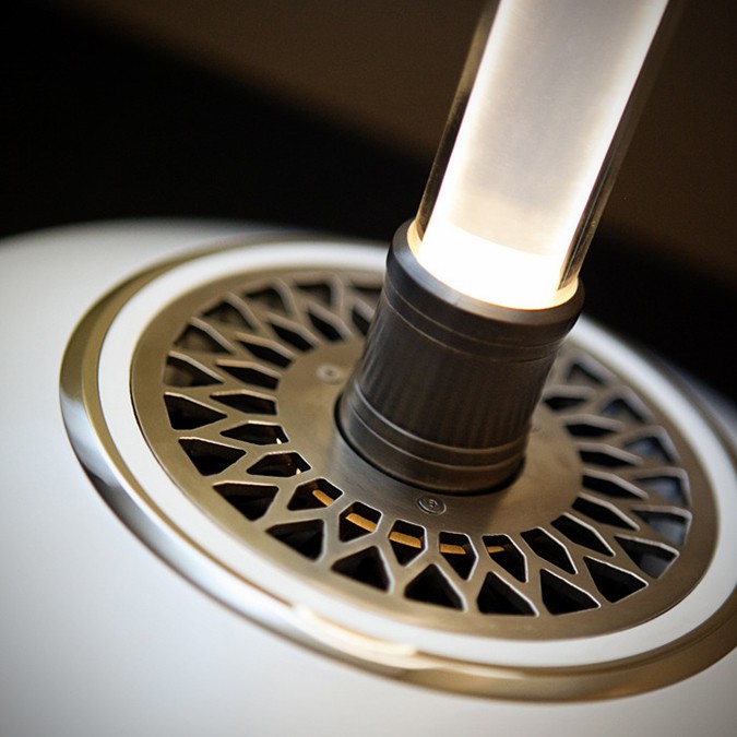 design and technology don’t always see eye-to-eye. however, the LightDrive Table Lamp begs to differ. beyond its sleek contemporary aesthetic lies a technology that will revolutionize how we light up. at the heart of the LightDrive is high-powered CREED XLamp series LED modules that gives a warm 2,700K color temperature, channelled through Radast’s specially engineered Total Internal Reflection (TIR) channel that directs the light to the top of lamp where it is softly diffused. now, we all know that LEDs run pretty hot which usually kills its rated lifespan but not with this particular carefully thought out design: instead of unsightly and cumbersome heat sinks, Radast employs cleverly designed aluminum heat sink, hidden away from view, coupled with innovative cooling channels located at its elegant base. what we dig most about this design is, while the light source is being directed primary to the top where it is being diffused, it leaves a trail of light that lights up its acrylic TIR channel which adds style and character to the overall lamp design.