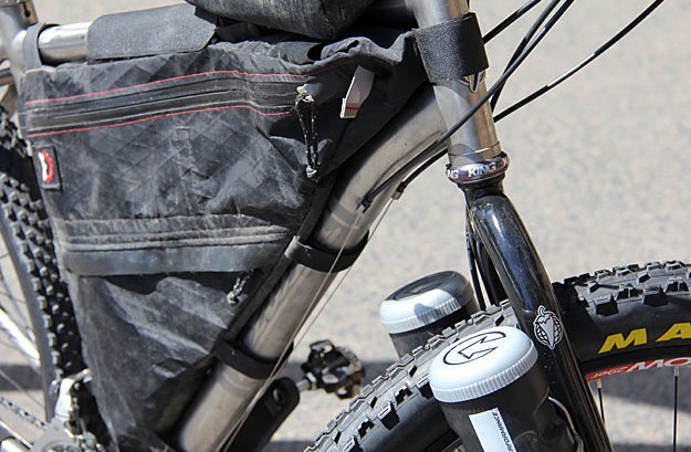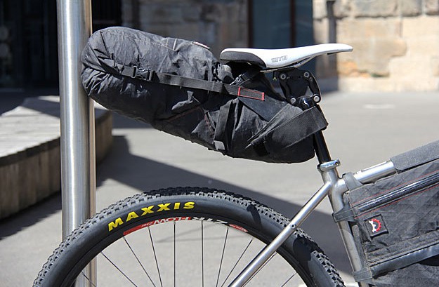 lovers of off-road touring on their beloved bike would often need to install racks or trailers (or both) in order to lug along supplies that are necessary to survive for days end. those additions are without doubt cumbersome and could dampen your free-spirited, round the wilderness adventure but Alaska-based bike gear maker, Revelated Designs, has a complete suite of luggage that would maximize the available space of your bike without going the racks or trailers route. its catalog consists of frame bags, tangle bags that fit a variety of bikes, ‘Gas Tank’, seat bags and among the many others. basically, it has everything that you will need to outfit your bike into one mean off-road touring machine, allowing you to pack in everything that you will need for the ultimate survival in the wilderness. the fine example shown here is a CycleEXIF SALSA FARGO TI equipped with the said Revelated Designs’ luggages for bike. i am not much of a cyclist but i know i am impressed. strange as it might sound, but it makes me want to take on the road with a pedal-power two-wheeler once again. i am not sure about the locking up part but i guess when you out in the wild, theft by fellow humans are less of a concern. more images after the break.