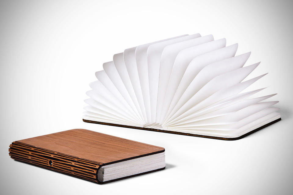bringing a flash light out in the night is nothing out of the ordinary but bringing a lamp? how many times do we actually need to do that? hardly, but that’s before you comprehend what the Lumio Lamp is capable of. the Lumio is a portable lamp that beckons you to discover new ways of using it. it can be an ambiance light, a night light, a pendant lamp, desk lamp, a corner lamp, or anything you can think of. at this point, we are obliged to think that the possibility is almost infinite. the inspiration behind Lumio is a book. yes. a book and that’s where thing starts to get interesting. Lumio is a book lamp, in which opening the book activates the lamp and closing the book switches it off. a simple yet powerful concept that explains why it is now already 466% funded on Kickstarter (and it still has 21 days to go). there are no buttons or switches to mess with and by adjusting the angle of the book, the brightness of its high-output LED lights can be regulated to your preference. powering its 500 lumen LED is a rechargeable lithium-ion battery that’s good for eight hours of continuous use per charge, but it can also hook up to a wall outlet via a discreetly located power connector on the spine, should you choose to use it as a permanent light fixture. the same power connector is also utilize for recharging the internal battery. the cover material is available in three FSC certified wood finishes (dark walnut, warm cherry, and blonde maple) and features built-in super strong neodymium magnets that lets you adhere the lamp onto any ferrous metal surfaces. and when you are done, simply close the book and slip it into your bag. the Lumio Lamp can be yours for a pledge of $95 or more. check out the product’s Kickstarter pledge video after the break.