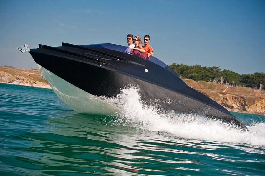 hydrogen powered vehicles are not new but this particular example here takes hydrogen power to the next level. what makes the Luxury-Sea MIG 675 here special is that it harvests its fuel directly from the water that it is travelling on. now, you can’t really do that with a land transport, do you? powered by a 500 horsepower hydrogen motor that is capable of propelling this 2,866 pounds, aluminum hull luxury boat up to 70 mph without polluting the environment. since it draws its fuel directly off the water beneath it, it negates the need for any compressed tanks, which translates to space saving. the boat can comfortably accommodates up to three persons and features LED navigation system, a leather interior, a built-in bar, teak floors, an retractable table, a shower, a toilet, and the all-important sun deck. don’t ask me how all those amenities were packed into this compact 22-footer cos’ we absolutely have no idea. all we know is, we love how the boat was sculptured. the good news for those with deep pockets is, the Luxury MIG 675 Yacht can be yours for a bank-breaking €250,000 (about US$325,625). wow. check out a video of the MIG 675 in action after the break.