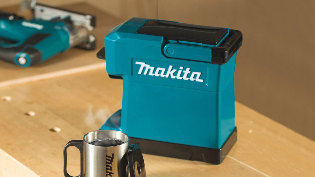 Makita. The Japanese brand is best known for its power tools and for a while guitar shredding. But do you know, it also has a coffee machine? In fact, it has not one, but two and the latest is the Makita 18V LXT/12V max CXT Cordless Coffee Maker. Perfect for your workshop bench or anywhere where power supply isn’t available. And if you don’t mind, it is perfect for camping too.