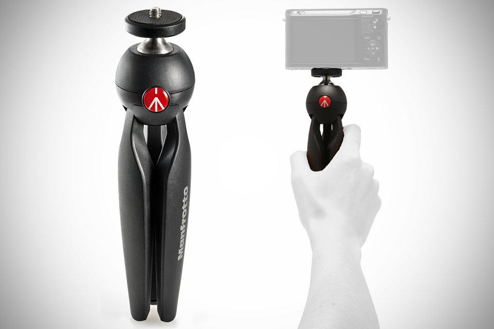 tripods needn’t to look bland and the Manfrotto PIXI Mini Tripod proves that point. not only does it look rad, it is totally functional and intuitive to use. clad in a lightweight stainless steel construction, the PIXI tips the scale at just 8 oz. (227 grams) and featuring an innovative push-button mechanism, allowing flexibility in framing your subject. its adaptable ball head is tilt-able in 35 degrees vertically and can pan a full 360 degrees along the horizontal plane. when fully deployed, it gives your camera a stable, elevated height of 5 inches (12.7 centimeters) and when closed, it is just 7-inches (about 18 centimeters) long which could easily fit into any standard bag. additionally, with the legs folded, the tripod can double as a comfortable grip for capturing stabilized video footages. basically, the Manfrotto PIXI Mini Tripod does what all tripods do, but with the added bonus of intuitive use (we just love the push-button mechanism) and the awesome aesthetic from premium Italian design and finishing.