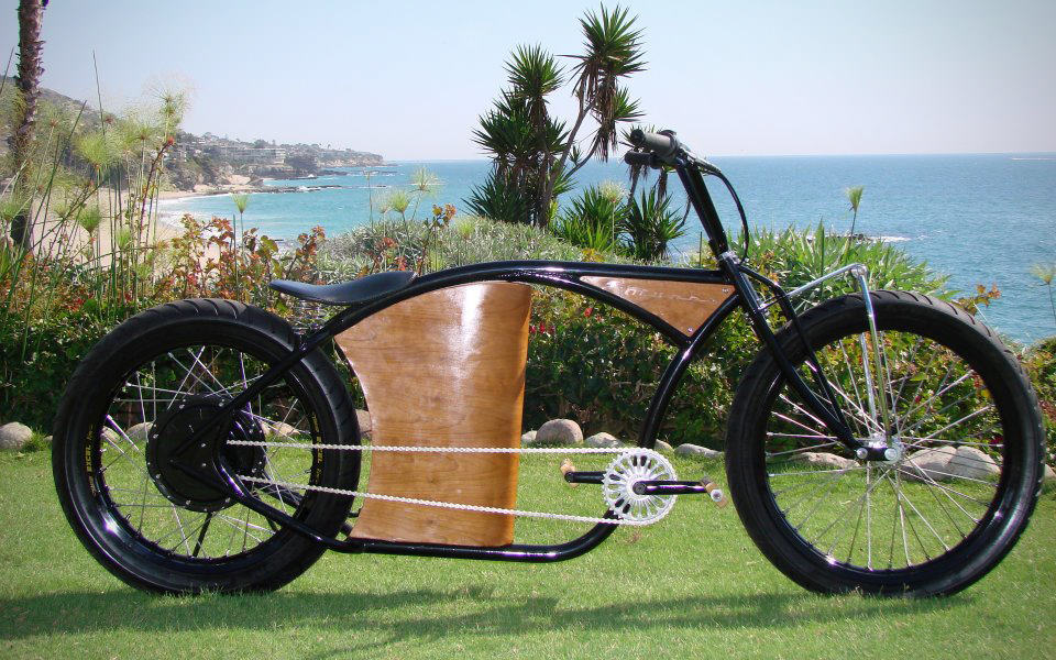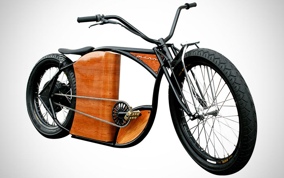 is this a bicycle or motorcycle? you will be forgiven to think that the M-1 Electric Bicycle from Marrs Electric Cycle Co. is a vintage Harley-Davidson but of course, it isn’t. breaking away from the regular (some say, conservative) design of electric bicycles, which are usually no more than just regular bike stuck with an electric motor and batteries, the M-1 sports a rather radical design that harkens back to the olden day choppers. apart from its standard issue pedal-powered drive train, it is fitted with a three-phase brushless rear hub motor and powered by rechargeable lithium battery packs. when on full motor power, the smallest battery pack of 20 amp hours is said to offer a range of about 32 km (20 miles) and a top speed of 32 km/h (20 mph). the 32 km/h top speed is about the maximum it could go in order for it to still fall into the electric bicycle category in State side. the bike is built to order, allowing customers to choose from the available frame colors and wood veneer types. the M-1 Electric Bicycle is handcrafted from 4130 chromoly steel with a mixture of components taken from high-end motorcycle, bicycle, as well as custom-made parts, which explains its hefty asking price of at least $7,000 – a price that is reserve for the serious tree huggers or ebike enthusiasts with eyes for vintage styling – and with lots of cash to spare. join us for a gallery of the M-1 Electric Bike after the break.