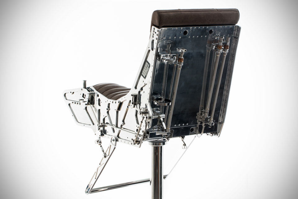 apart from the aforementioned, details are unknown about this beautiful example, but from what we can see from the images (which can find in the gallery after the break), most parts of the original chair has been retained (including the seat’s nameplate), sans the propulsion and the associated baggage like the ejector trigger, head support and stuff. nevertheless, the form of a fighter jet seat is unmistakable and it has, of course, a foot support essential for duty as a bar stool. if you fit the requisite (i.e. have the money to drop), you can order yours from Hanger 54 for a cool £8,160 or about US$13,400 each.