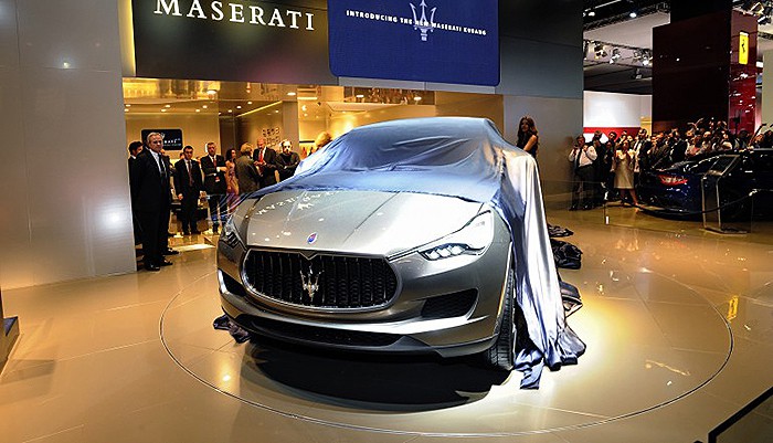 the SUV will be offered with a choice of Maserati engines, to be designed in Modena by former engine chief of the Ferrari Formula One racing team, Paolo Martinelli – and produced in Maranello by Ferrari. nothing much has been disclosed even with its debut at the Frankfurt Motor Show, apart that the choice of engines will be mated to an AT 8-speed auto transmission, and “specific performance settings such as suspensions, brakes, steering will be exclusively developed in Modena by the Maserati Product Development Department.” i hate to say this but the car does look hot or was it the ladies standing beside it?