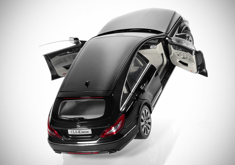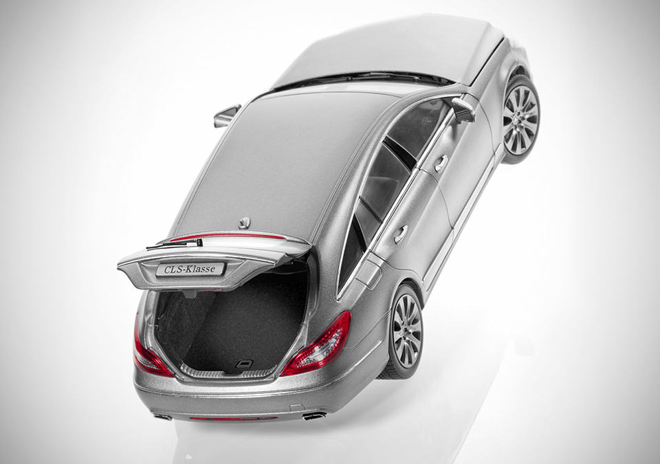 love everything about the Mercedes-Benz CLS Shooting Brake? then you wouldn’t want to miss its miniature counterpart that’s essentially a faithful copy of the real deal, road going model, showcasing the new age coupe’s stretched roofline and among other details. designed in collaboration with model car specialist Norev, the miniature CLS Shooting Brake was crafted with data taken from the real car’s CAD (computer aided design) plan and features original paints and are hand-assembled. two scales are available: 1:18 scale which measures 25.5 cm (10 inches) and the 12 cm (4.7 inches) long 1:43 scale model. both models are of zinc die cast with the 1:18 model assembled from over 115 individual parts and features detailed interiors and doors, bonnet and boot that can be opened. the smaller 1:43 scale model, on the other hand, is put together with more than 53 individual parts and share common features such as LED headlamps with Intelligent Light System (ILS) and multi-spoke light alloy wheels, with its larger sibling. dropping in end of this month, the 1:18 Mercedes-Benz CLS Shooting Brake is available in obsidian black, thulite red and design magno allanite grey for €69.90 (roughly, US$90), while the 1:43 version comes in choice of iridium silver, diamond white metallic BRIGHT and manganite grey SHAPE for €29.90 (about US$39).