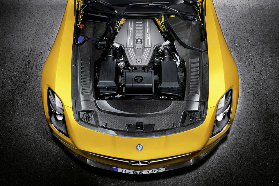 when you have a car that’s said to be inspired by its racing homologation, you know you are going to greeted with loads of awesome features. with the Mercedes-Benz SLS AMG Coupe Black Series that’s what you expect to find. fitted with a hand-built AMG 6.3-liter V8 unit (slapped with the fitter’s signature) that puts out 631 ponies (464 kW) – 60 horses more than the SLS AMG – and 635Nm of torque (468 lb-ft), mated to a AMG SPEEDSHIFT DCT 7-speed sports transmission that propels this beast from naught to hundred in a mere 3.6 seconds and on its way to a top speed of 315 km/h (196 mph). other features include coil-over AMG RIDE CONTROL performance suspension, AMG ceramic high-performance competition brake system, weight-optimized forged AMG 10-spoke matt black light-alloy wheels with newly developed Michelin Pilot Sport Cup 2 sports tires, electronically controlled AMG rear-axle differential locks, fully revised high-speed valve train with modified camshafts, modified air intake ducting, gas-filled strut braces, titanium AMG sports exhaust system, carbon fiber reinforced plastic (CFRP) drive shaft and AMG speed-sensitive steering system.
