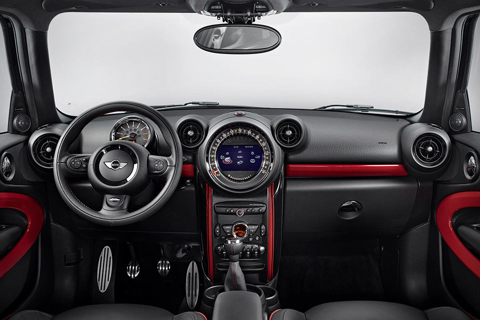 other highlights include ALL4 all-wheel drive system, an striking and functional aerodynamic kit, humongous 18-inch light alloy wheels (if that’s not enough, 19-inch is on the option palate too) and slammed ride height with lowered sports suspension kit. moving on to the interior is a customary race-inspired setup including dark-colored dials marking its 260 km/h (160 mph) top speed, anthracite roof liner and generous serving contrasting red stitching on its sports steering wheel, gear shift lever gaiter, floor mats as well as its cloth seats in Diagonal Track John Cooper Worker Carbon Black trim. and since it is a JCW flavored MINI, you will find yourself greeted with the JCW logos in and around the vehicle such as the radiator grille, tailgate and door sill strips as well as next to the side indicators. before hitting the market in March next year, the MINI John Cooper Works Paceman will make its world premiere first at the North American International Auto Show (NAIAS) in January 2013. check out a small gallery of the extreme sports edition of the Paceman after the break.