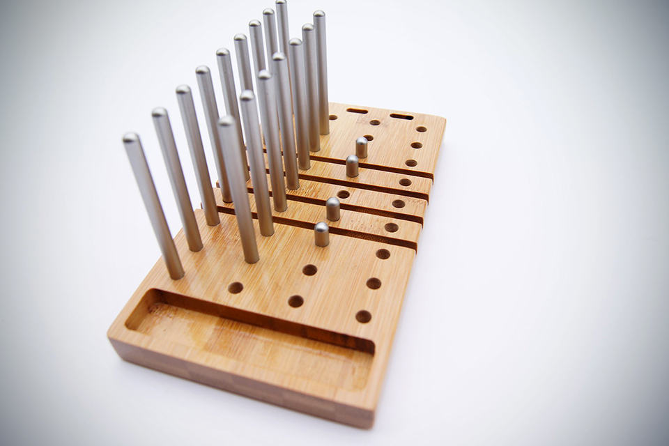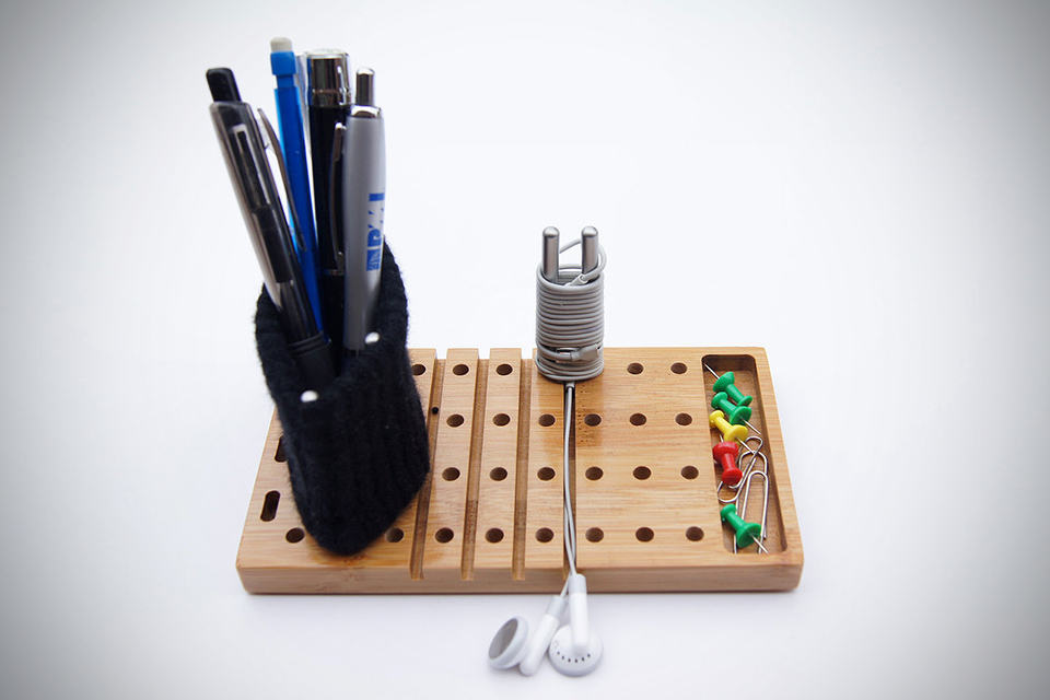 you know what? we had a hard time deciding how to do a write up for this product, the Modo – Modular Desktop Organizer. not because it is not good but because it is a no brainer product that makes us exclaim ‘why didn’t we think of that!’ and it has too many uses that we can’t even began to categorize it. really it is that good, and flexible. basically what you have here is a piece of bamboo-crafted board with a bunch of holes, slots and groves, that when combined with the accompanying aircraft-grade aluminum pins, forms a highly versatile desktop organizer (or desktop tidy, if you prefer). all you have to do is to plug the aluminum pins in any formation you desire and start organizing your books, CDs, tablets, smartphones and whatever that can help to reduce the clutter on your desk top. also included are four cable management grooves, three USB flash drive slots and storage cut out for storing unused aluminum pins or other small nitty gritty items. its maker, B&A Studio has taken this brilliant concept to Kickstarter and is seeking your help to make this project a reality. the Modo is not only one of the coolest desktop organizer we have seen thus far but it has one of the simplest reward program we have come across on Kickstarter with just one pledge amount for one reward: for a pledge of $26 or more, you will secure yourself one 18cm by 10cm (7″ x 3.9″) bamboo board, sixteen long aluminum pins and four short aluminum pins. of course, the latter would only be realized if the minimum funding goal is met. check out a cool product video after the break.