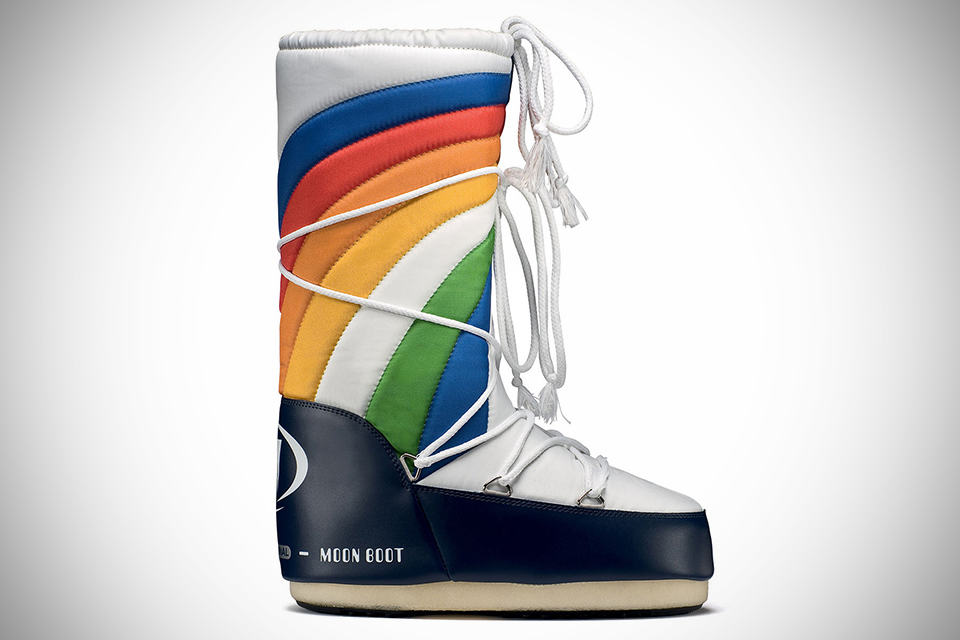 whether you are still beating the snowy winter or just a fashionable arctic-hiker or preparing for the big space travel in future, we are sure the these futuristic boots for winter, dubbed the Moon Boots, by Italian firm Moonboot would tickle the stylish you. the Moon Boots aren’t new to the market but like all things awesome, it will always deserve a space here. inspired by astronaut’s hefty footwear, the Moon Boots are designed for you to straddle across the snow plains with extreme and not to mention, loud style. designed by Italian entrepreneur Giancarlo Zanatta after witnessing the first lunar landing in the historical July 20, 1969, the Moon Boots – like the man who took the first leap on the moon, made a giant leap in fashionable snow boots. apart from being uber fashionable, the functional aspects include insanely thick rubber soles that offers added traction for treading on ice, a well-insulated inners for keeping your footsie warm and cosy, and a unique design where there’s no left or right – just slip on and go. available in a mind-blogging number of designs and colorways including our favorite, the classic Rainbow design. you can grab yours from Fab at a special discounted rate starting from just $90 a pair. however, if you want one (or two), you better hurry cos’ the sale will end in two days time.