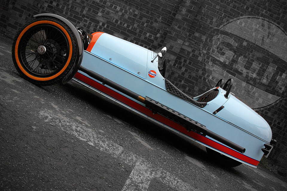 if a vehicle on odd number of wheels isn’t special enough in your books, then perhaps a three-wheeler dressed up in the famous racing livery – in this case, the Gulf Oil’s blue and orange colorways – could help in boosting that aspect of individualism or uniqueness; even more so when you are talking about only 100 of these commemorative Morgan Motor Three Wheeler Gulf Edition will ever be made. setting it apart from the ‘lesser’ Three Wheeler is, first and foremost, the dual color Gulf livery that’s every bit as iconic as every car these colors have been put on. of course, the British automaker doesn’t stop at just colors. this Gulf Edition also receives a blacked out details on several components including the engine, the headlamps, the roll hoops, the mud guards, the exhausts, as well as the exhaust heat shields. the black treatment continues on into the cockpit, engulfing its dashboard panels, leather upholstery, while a limited edition badge on embossed leather and contrasting orange stitching on the steering wheel wraps up this special edition’s interior. a couple of obvious treatment include black out mirrors accented with orange rim and orange wall tires that adds to the Gulf Edition’s character. the excellent news is, this vehicle can actually be acquired if you have £29,162.50 (plus VAT) to spare (roughly US$47,000). not everyone is lucky enough to have access to this three-wheel ride and that’s why we have a small gallery of higher-res images for us, the deprived, to ogle about. go on and check them out.