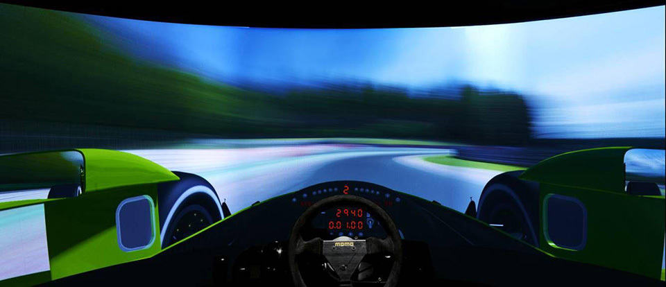 choose between the barebone package that comes with the 180 degree, spherical screen, multiple seating angle cockpit, adjustable pedal plate and steering column, storage space for PC and game console, and cable management system or opt for the system that comes with a full plug and play package. the latter is available in two models: the TL1s and the high-end TL1 Professional. the TL1s is the standard TL1 plus three projectors with 3 million pixels on the tap, a high performance integrated PC, steering wheel and pedal set, motion cockpit floor with high frequency transducers, headphones and audio output from surround sound system. the holy grail of the three currently offered is the TL1s bumped up with three projectors with 7 million pixels, an ultra high performance integrated PC, motion cockpit floor with multiple high frequency transducers and a choice of a higher performance or optional professional steering wheel and pedal set. the Professional model also opens up the option to brand this expensive rig to call it your own, visually.
