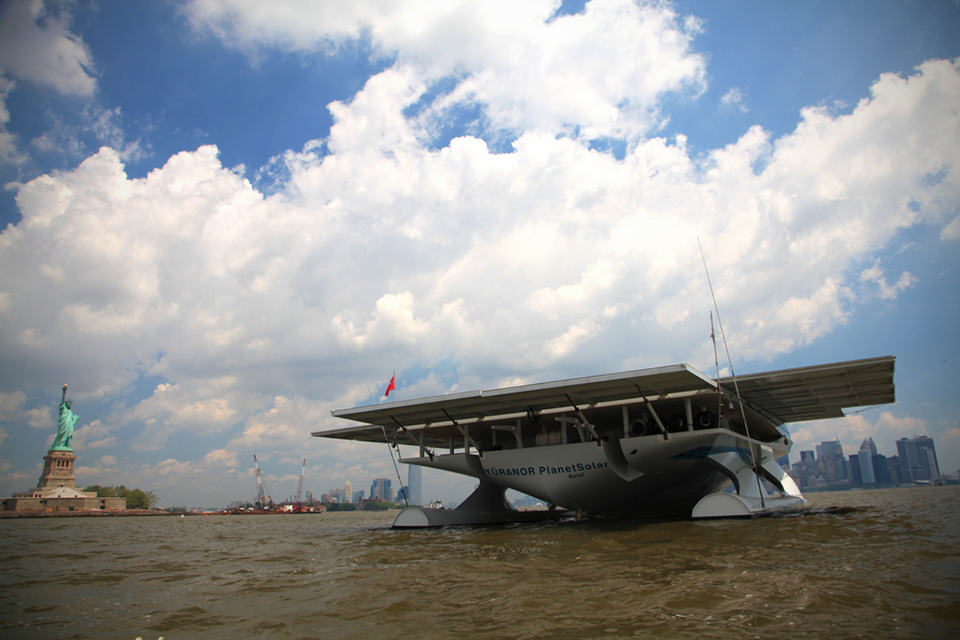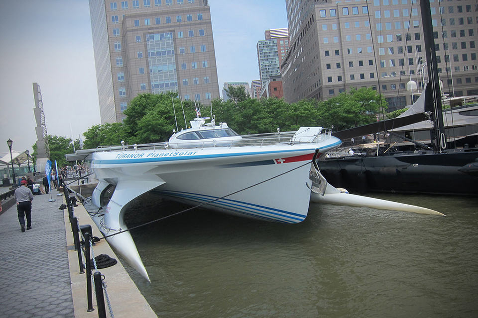 even after over two years after its launch, the MS Turanor PlanetSolar Boat is still worthy of being feature here. especially after it has made a historical 19-month trip, circumnavigating the world’s water with just only solar power. more recently, the Swiss catamaran sets sail with a scientific purpose; to collect data along the Gulf Stream under the project dubbed as The DeepWater Expedition. crowned as the largest solar-powered watercraft, it has 516 square-meter of photovoltaic panel all lined up on the surface of the boat, converting the sun energy to feed its 8.5 tons of lithium-ion batteries that powers its 120kW electric motor and enabling it to cruise on the open water at a modest pace of 5 knots (average). the boat kicked off its leg from Miami, after which it made a friendly drop at New York which will followed by a few port of calls in Boston, Canada, Iceland, before finally, completing the trip in Norway.