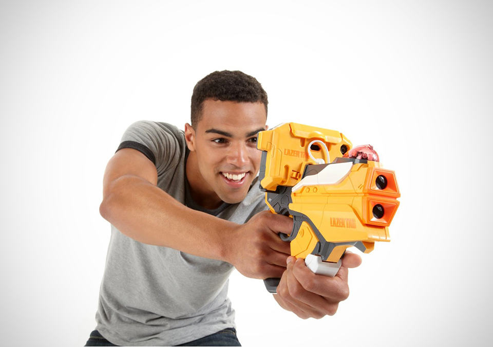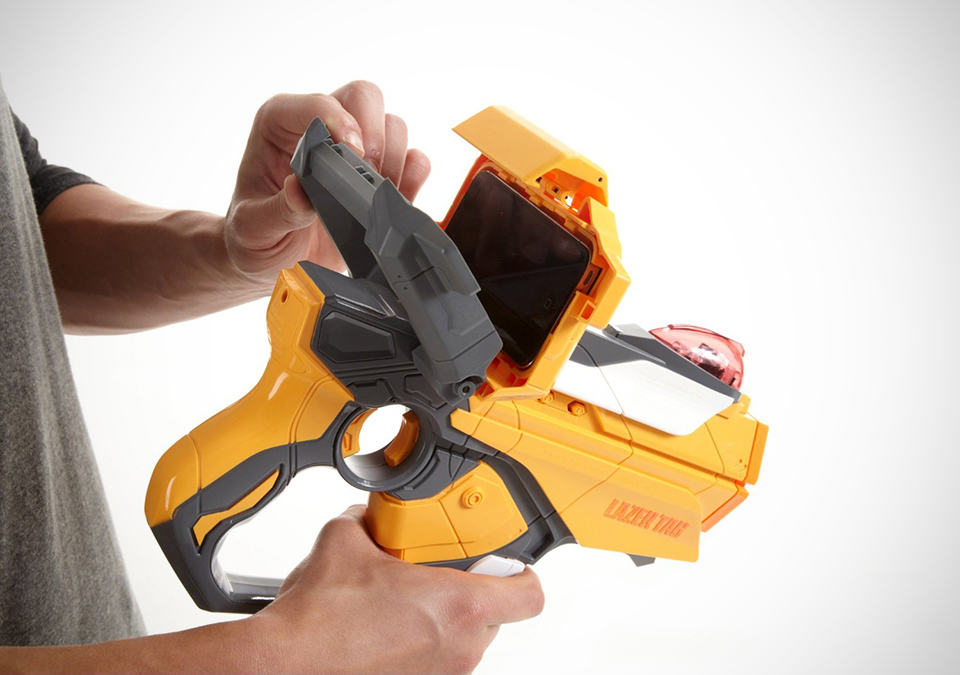 nostalgic is a word easily defined by a dictionary but we can’t really explain the phenomena, especially when the object in question is rebooted with the touch of modern technology or improvement, such as the NERF LAZER TAG Double Blaster Pack. what makes this new old (laser) gunslinging game so special is the inclusion of an iPhone or iPod Touch into the mix. a conveniently located slot holds your iOS device where the device plays duty as a cool heads-up display which offers an increased firing range of 250 feet and augmented reality if you intend on playing as a lone wolf. needless to say, the game is most exciting when played with your pals which a free app will facilitate up to 23 other players to join in mayhem. the app also details the player’s in game gear, power levels, profile, stats, and a leaderboard, showing you where you stand. if you don’t already own an iOS device, it can still be played without one but then again, it wouldn’t be as fun and futuristic which kinds of remove the shine off the toy. the NERF LAZER TAG is available as a single blaster pack for $39.99, or as a double blaster pack for $74.99.