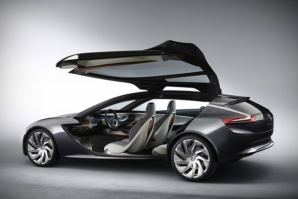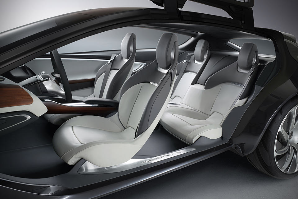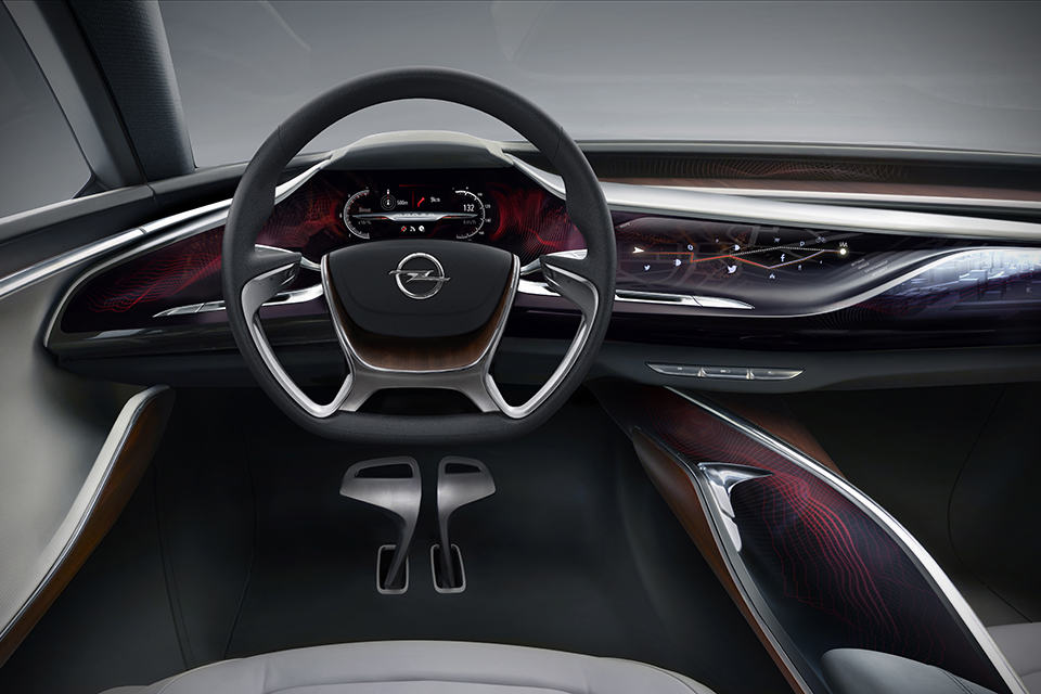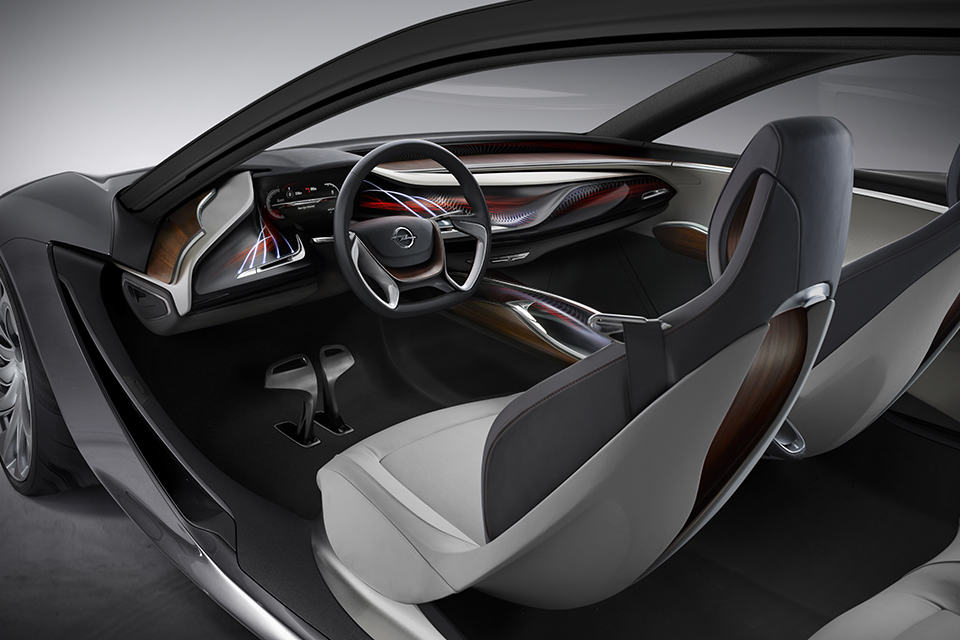 so is this a signal of the returning of the iconic Opel ride? perhaps not. for one, it is a full size, four seater – though it has only two large, gull wing doors which hints of it as a coupe – however, the two large doors actually offer full, unobstructed access into the vehicle much like any regular four-door sedans, just that it has only one door on each side for ingress for both front and the back (note that B-pillars are absence here too). and it is more like a hatch, then a coupe or even a fastback. honestly, we don’t see the resemblance except for the name. the only thing that we see as similarity to the original is the dash; back then, the 77′ Opel Monza was considered way ahead of its time by incorporating digital display and now, Opel has again go way ahead of its time by building LED projection technology into the entire dashboard. this is the part where things get really futuristic – there’s no instrument cluster or whatsoever; it is just a customizable multifunctional display that stretches from door-to-door – made possible by 18 LED projectors. however, whether this technology will be incorporated into actual production cars remain to be seen.