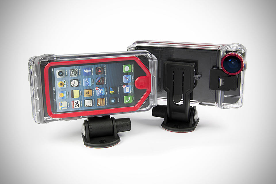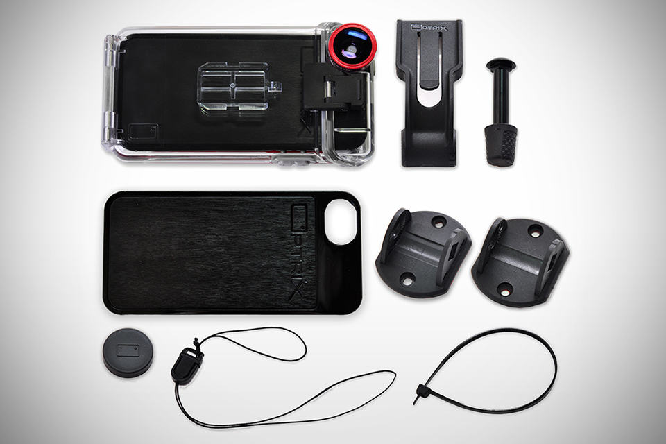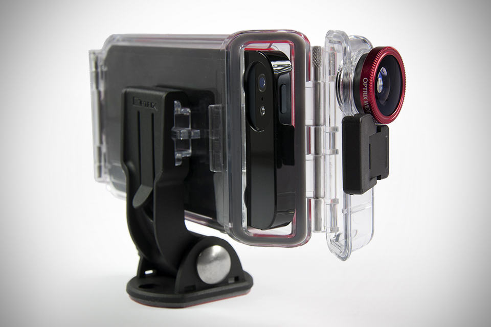 there are few reasons why one would want to turn their iPhone 5 into an action cam. excellent videoing capability and the convenience of editing, and sharing of footages are just some of them. for such iPhone application, the Optrix XD5 Action Video Camera System for iPhone 5 will have you covered. billed as the first ultra-rugged, camera optimizing system for iPhone 5, it does what other action cam does with added enhancement in the lens department through an included 175 degrees lens. the new design is thinner, lighter and is stronger than its predecessor and features a new rail mount system for quick on-off mounting to helmets, chest mounts, water sport mounts, and handle mounts. the various elements are the greatest enemy of any action cam and to that end, the Optrix XD5 employs a ‘monocoque’ unibody system as found in modern Formula 1 race car, thereby protecting your iPhone 5 against pressure, drops from up to 40 feet (12 meters), and water resistant down to 15 feet (4.6 meters). the Optrix XD5 Action Video Camera System for iPhone 5 is available now for $129.95 a pop.