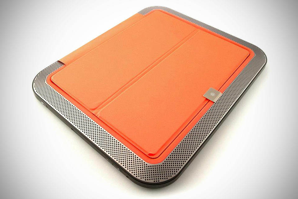 it is no secret that iPad audio performance is anything but loud or fantastic which is a real mismatch with its beautiful high resolution display. this is where the ORA Sound System for iPad might comes in handy. with the ORA, your iPad will be instantly equipped with an array of eight front-facing speakers encased in a beautiful aluminum case which also doubles as an iPad protective case. an optional Smart cover-style magnetic protective cover offers a complete protection while doubling as a stand for your ORA-equipped iPad. the eight speakers are complemented by a hand-tuned digital signal processor (DSP) that controls the 3D stereo expansion, giving you an immersive stereo audio enjoyment regardless of whether your iPad is in portrait or landscape mode. the ORA is powered by its own lithium-ion battery and therefore, it won’t drain your iPad’s juice. speaking of which, the designers even taken to pain to match the ORA’s battery performance to that of the iPad’s which happens to be up to 10 hours of usage. additionally, ORA employs the same 30-pin connector as your iPad, eliminating the need for extra charger and/or cable and this very same cable will charge both the ORA and the iPad simultaneously. other key features include a 3.5mm audio headphone jack for private listening, battery status button with LED indicator, hard buttons for volume control and power on/off and of course, a look to please any style-conscious folks (needless to say, us included). the ORA Sound System for iPad is currently on crowdfunding platform Kickstarter seeking your support and you can yours for as low as $99 each. check out a pledge video after the break.