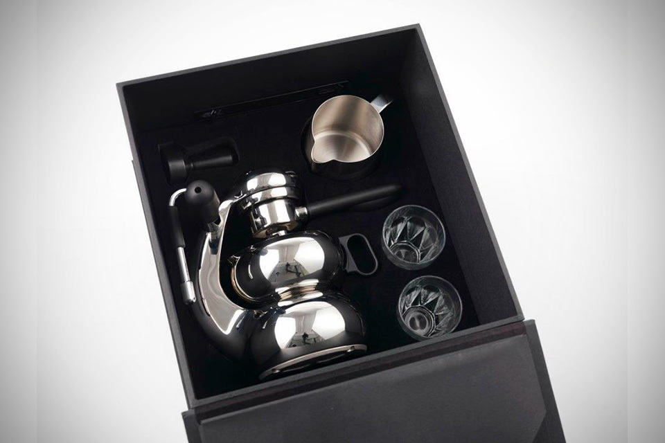 if the convenience of hitting a button to make a cuppa of aromatic espresso is considered as an insult to a serious espresso connoisseur like you, then you should really take a look at the OTTO Stovetop Espresso Maker. paying homage to the legendary Atomic Espresso Machine designed by Giordano Robiatti in 1947 and as its name implies, this beautiful stainless steel caffeinated beverage brewer works over the stove (excluding induction stove for obvious reason) and requires a bit of work before you could savor your brew and if you are already feeling intimidated by its ‘complexity’ involved, you will be relieved to know that it actually comes with an instructional DVD on how to get the machine going, which you should really watch if you are really serious about making a real cup of connoisseur’s espresso. the machine is packaged with two Italian latte glasses, a stainless steel milk jug and a custom tamper. a sleek travel case rounds up the package, insuring that you will not have to put yourself through the agonizing separation anxiety with your lovely machine (though it will be good to make sure where you are headed, does have a stove at your disposal). any how, the OTTO Stovetop Espresso Maker can be yours for AU$689 (roughly US$715). click through for a few more look.