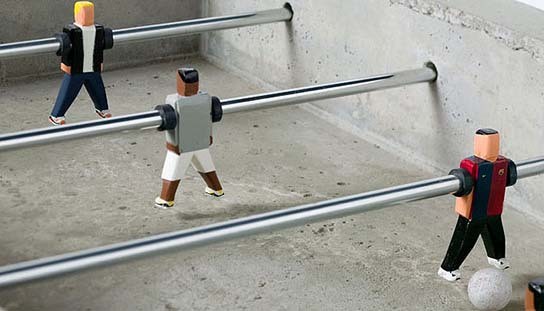 the fact that it has just four ‘foosballers’ who are ‘dressed’ in casual attire recreates the true spirit of street soccer. originally created by I Have Pop for a Nike exhibition in Amsterdam, the Panna Foosball Table aimed to challenge players to think of new ways to play. as I Have Pop puts it:
